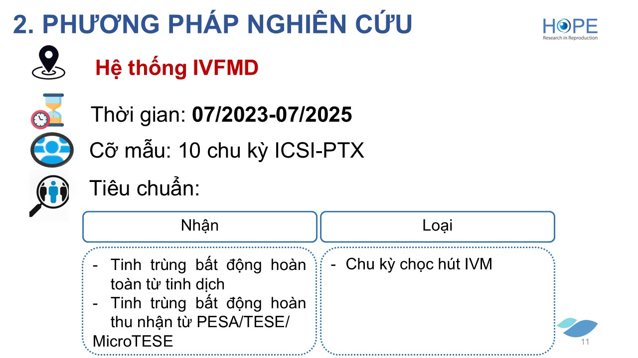 Hiệu quả của pentoxifylline trong việc lựa chọn tinh trùng bất động hoàn toàn trong kĩ thuật tiêm tinh trùng vào bào tương noãn (ICSI): báo cáo loạt ca 14/03/2026 15:02:52 7 Lượt xem CNSH. Võ Minh Tuấn IVFMD, Bệnh viện Đa khoa Mỹ Đức Mọi sao chép, trích dẫn từ toàn bộ bài báo cáo phải được sự đồng ý của HOSREM hoặc của tác giả. Từ khóa: báo cáo hội trườngCECHội nghị Phôi học Lâm sànglựa chọn tinh trùngpentoxifyllineICSI Chia sẻ bài viết: Zalo