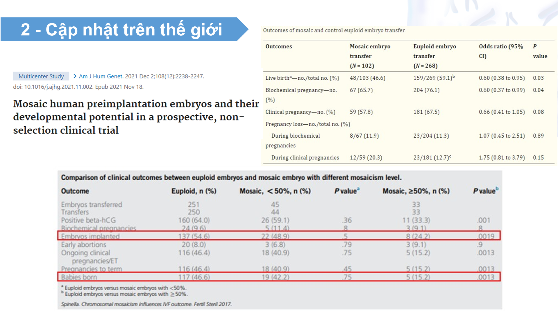 Kết cục thai kỳ ở bệnh nhân chuyển phôi khảm trong kỹ thuật IVF/ICSI