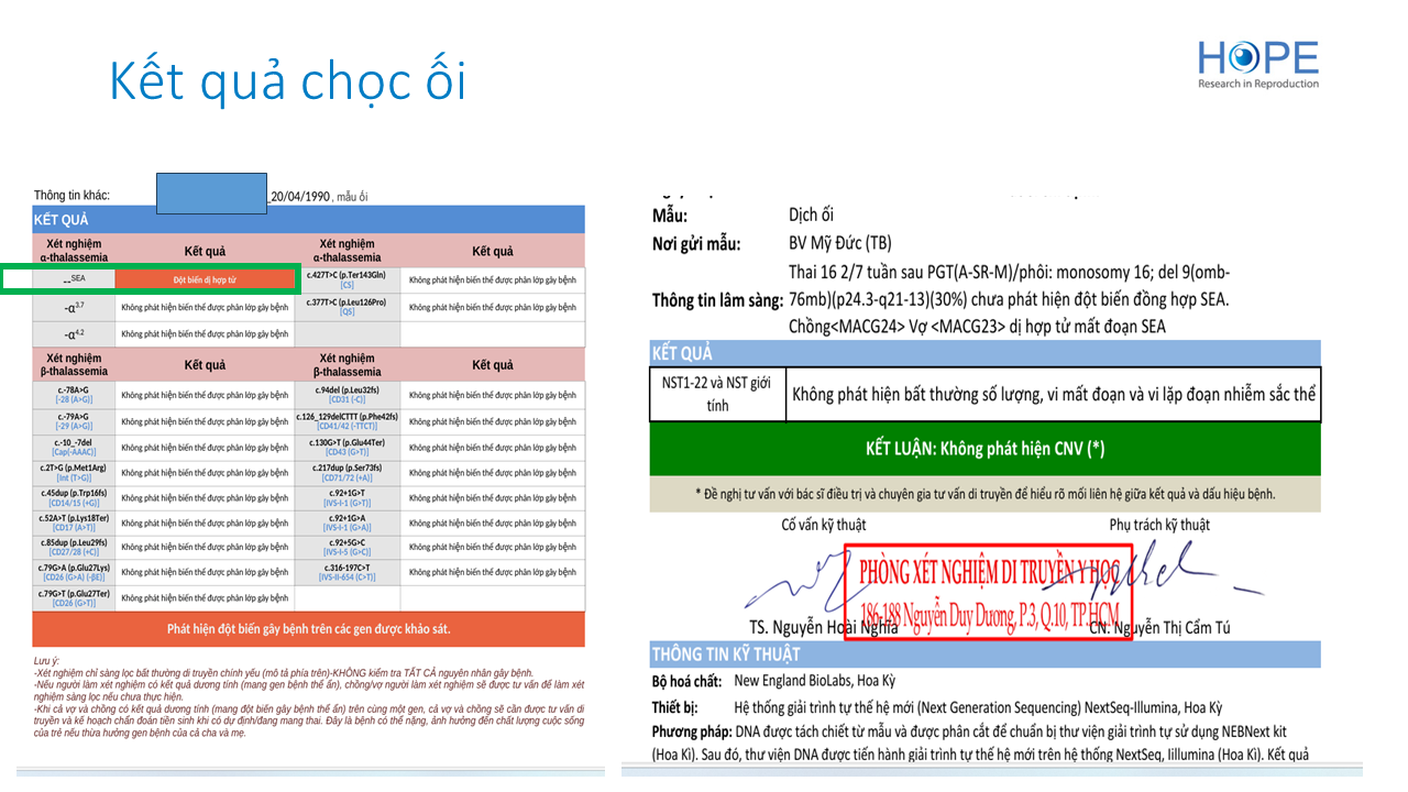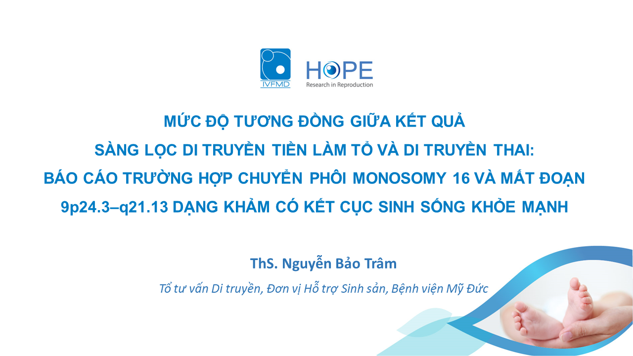 Mức độ tương đồng giữa kết quả sàng lọc di truyền tiền làm tổ và di truyền thai: báo cáo trường hợp chuyển phôi monosomy 16 và mất đoạn 9p24.3 - q21.13 dạng khảm có kết cục sinh sống khỏe mạnh