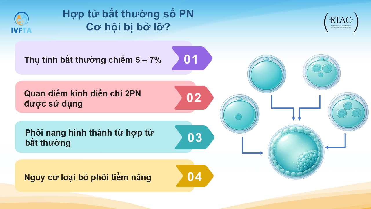 Phôi từ hợp tử thụ tinh bất thường trong IVF: từ loại bỏ sang chọn lọc có cơ sở di truyền bằng công nghệ PGT-A tích hợp NGS-SNP và quan sát time-lapse