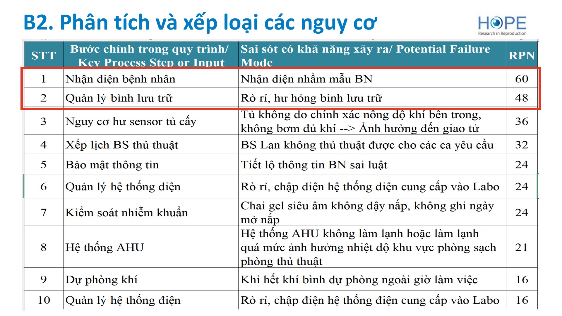 Quản lý nguy cơ - sự cố trong trung tâm thụ tinh trong ống nghiệm