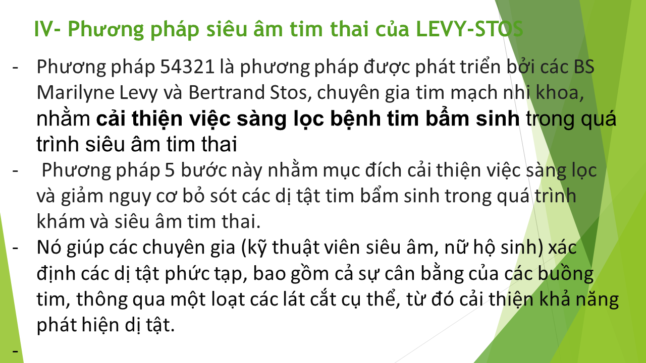 Siêu âm tim thai bằng phương pháp LEVY và STOS. 5-4-3-2-1