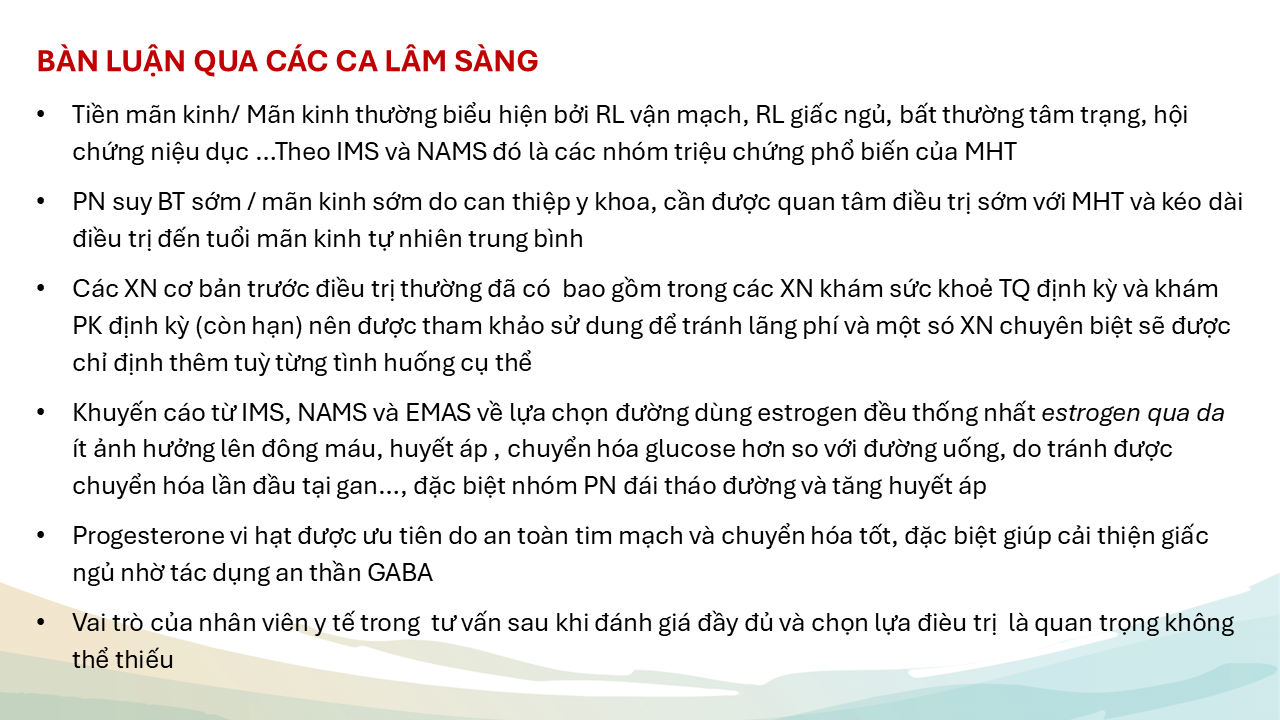Hướng dẫn thực hành: tư vấn lợi ích - nguy cơ khi điều trị MHT và sử dụng lâu dài