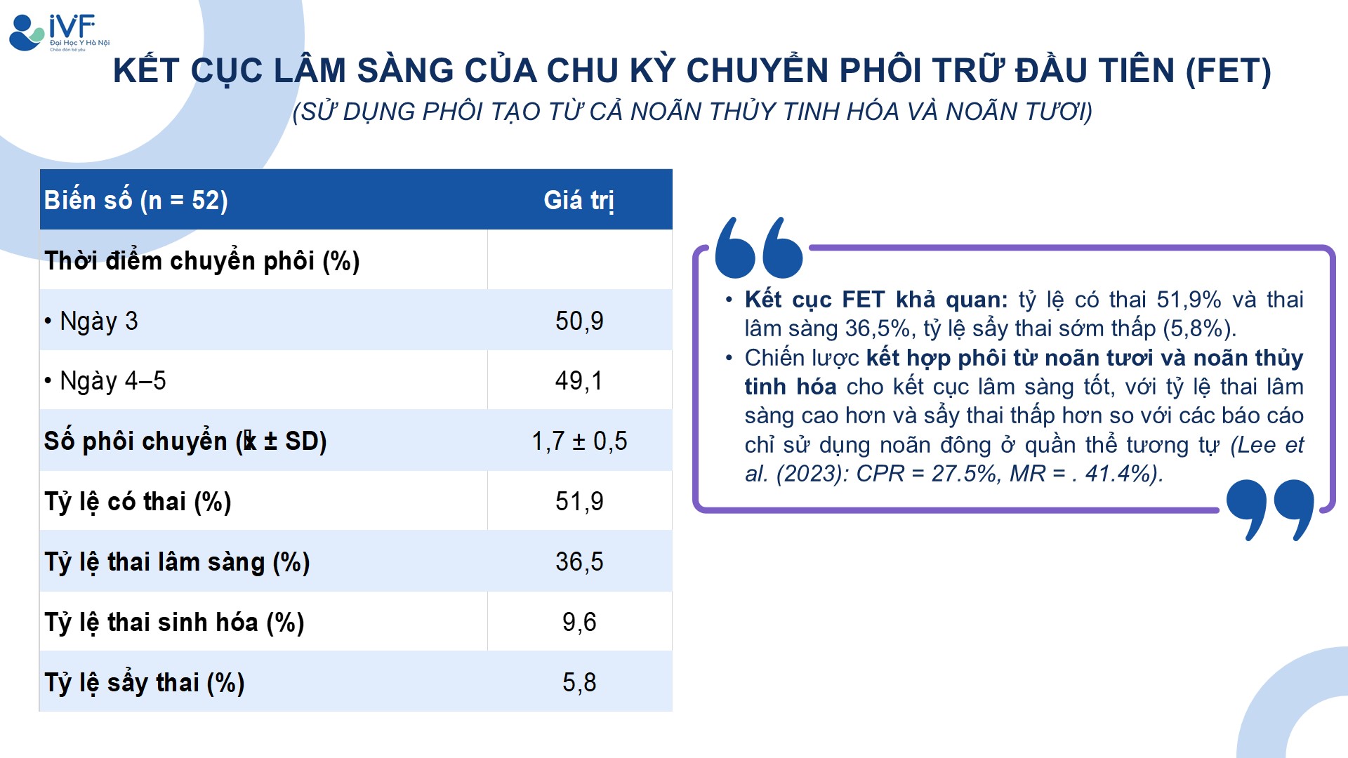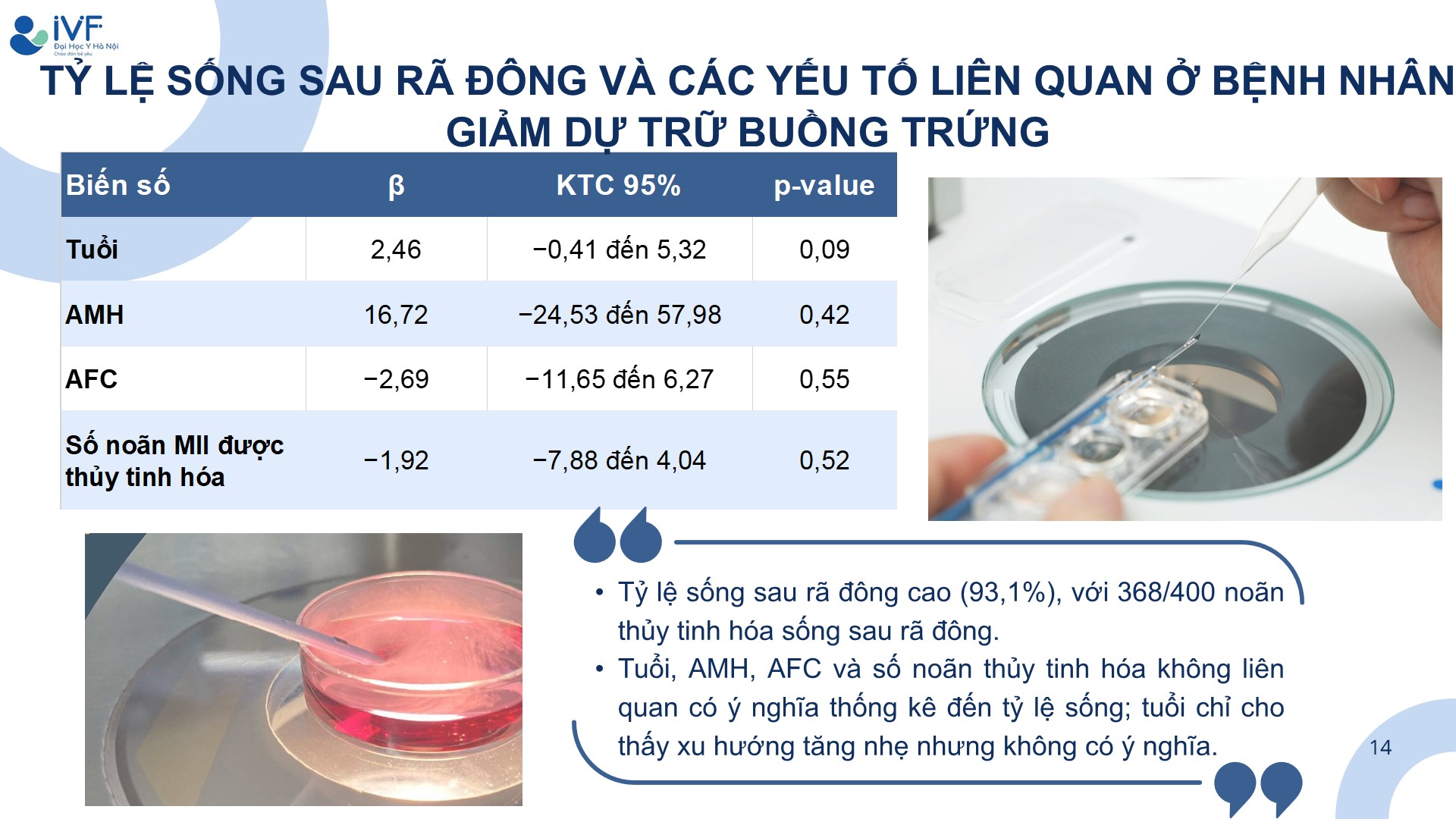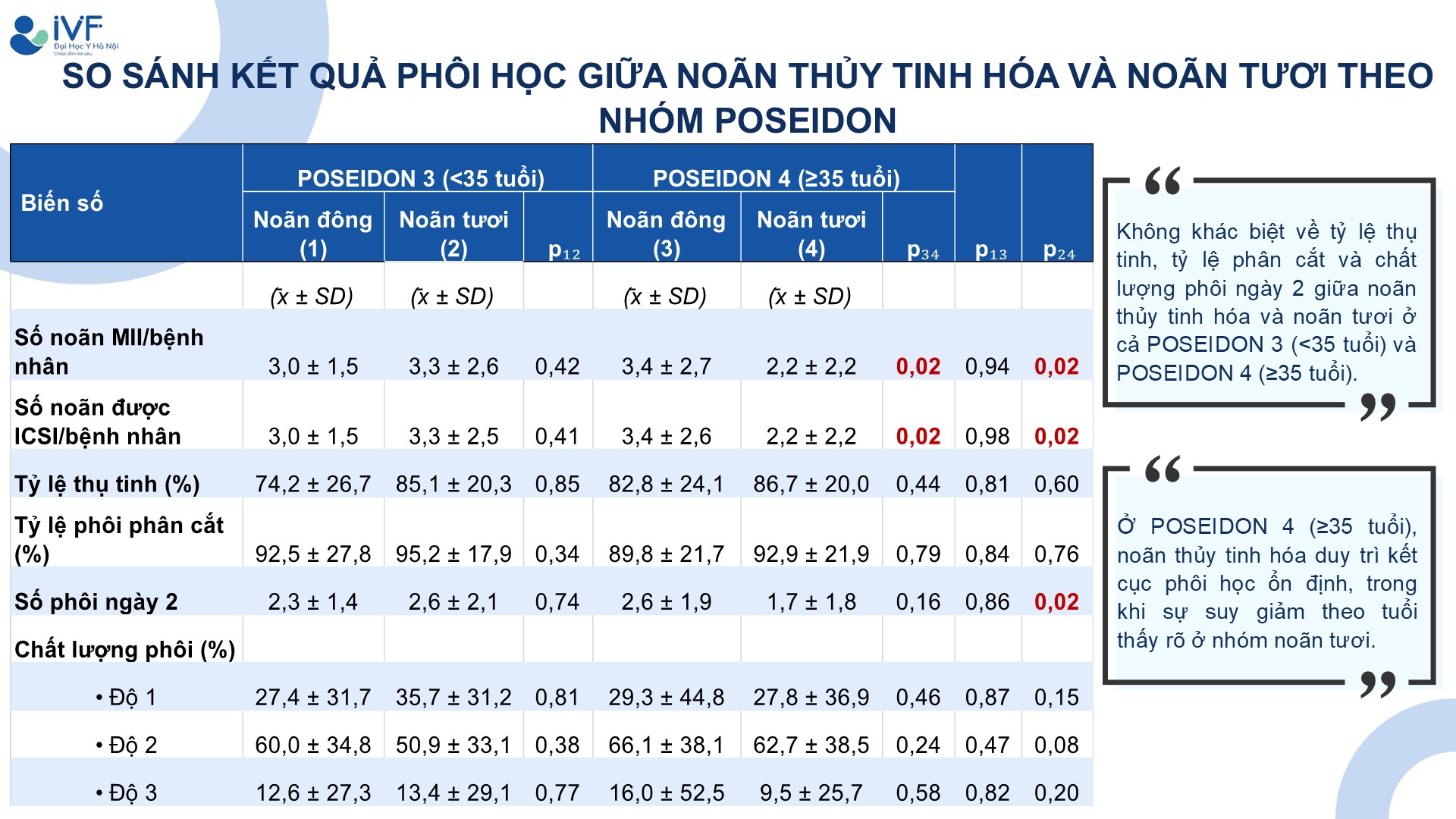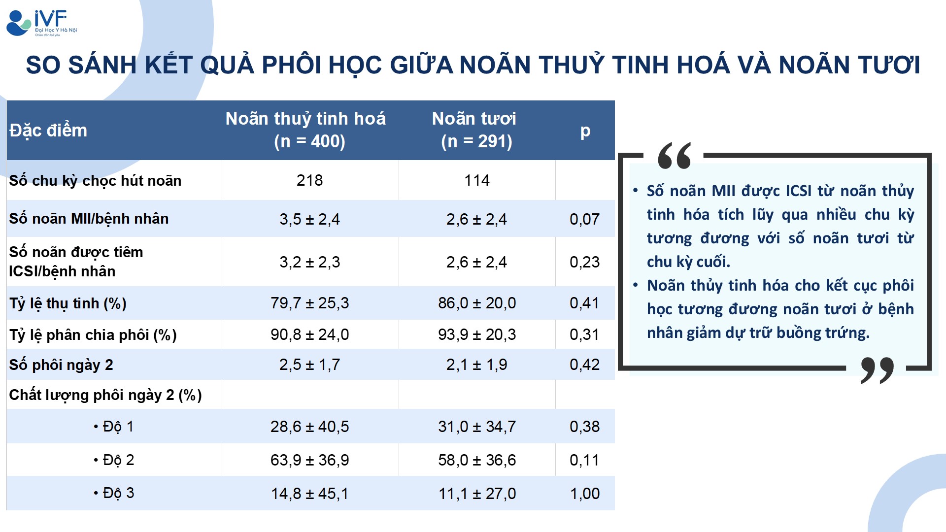 So sánh kết quả phôi học giữa noãn trữ lạnh bằng thủy tinh hóa và noãn tươi ở bệnh nhân giảm dự trữ buồng trứng