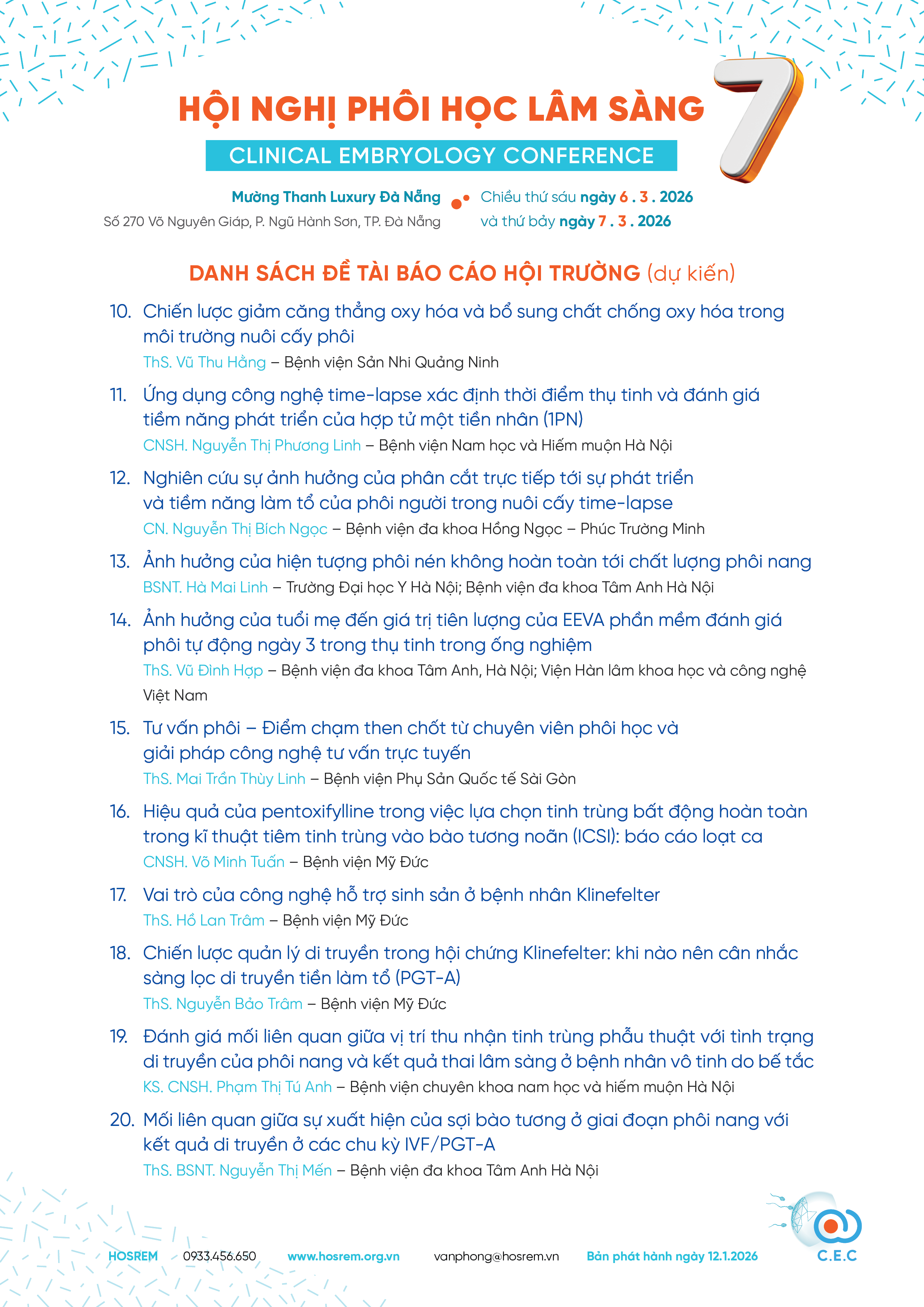 HỘI NGHỊ PHÔI HỌC LÂM SÀNG LẦN THỨ 7