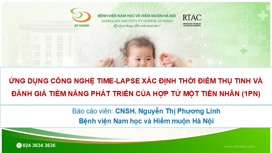 Ứng dụng công nghệ time-lapse xác định thời điểm thụ tinh và đánh giá tiềm năng phát triển của hợp tử một tiền nhân (1PN)