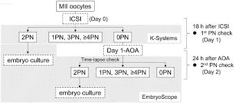 Noãn được ICSI (Day 0) và kiểm tra thụ tinh sau 18 giờ (Day 1). Hợp tử không xuất hiện 2PN được AOA (Day1-AOA) và được theo dõi bằng time-lapse. 24 giờ sau khi AOA (Day 2) kiểm tra kết quả thụ tinh. Hợp tử xuất hiện 2PN được nuôi cấy đến giai đoạn phôi sau đó.