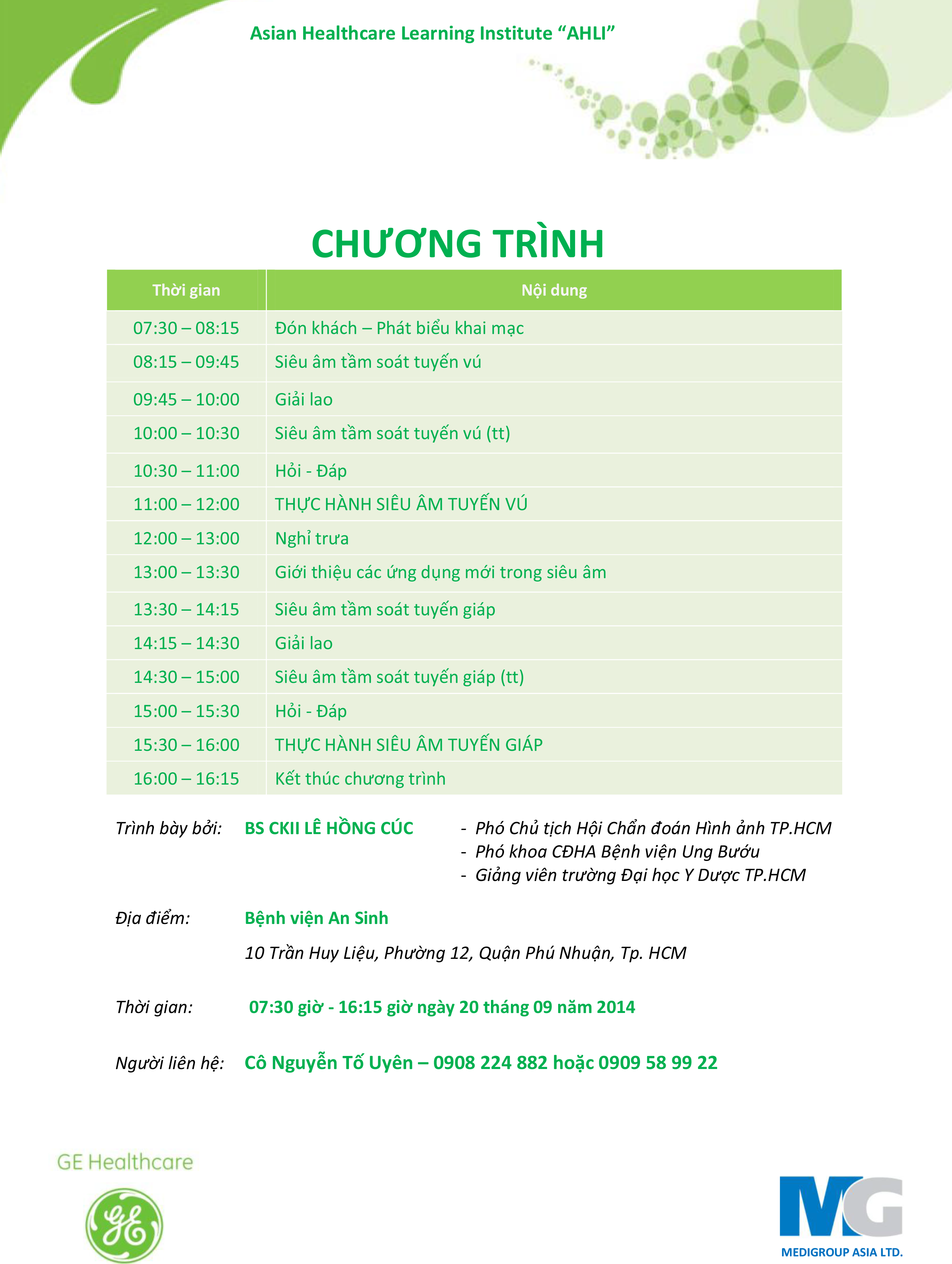 Asian Healthcare Learning Institute “AHLI” 31/08/2014 38 Lượt xem Trình bày: CS CKII Lê Hồng Cúc - Phó Chủ tịch Hội chẩn đoán Hình ảnh TP.HCM - Phó khoa CĐHA Bệnh viện Ung Bướu - Giảng viên trường Đại học Y Dược TP.HCM Từ khóa: Asian Healthcare Learning Institute “AHLI” Chia sẻ bài viết: Zalo