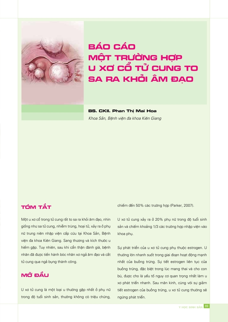 Báo cáo một trường hợp u xơ cổ tử cung to sa ra khỏi âm đạo 20/07/2015 70 Lượt xem Từ khóa: Báo cáo một trường hợp u xơ cổ tử cung to sa ra khỏi âm đạo Chia sẻ bài viết: Zalo