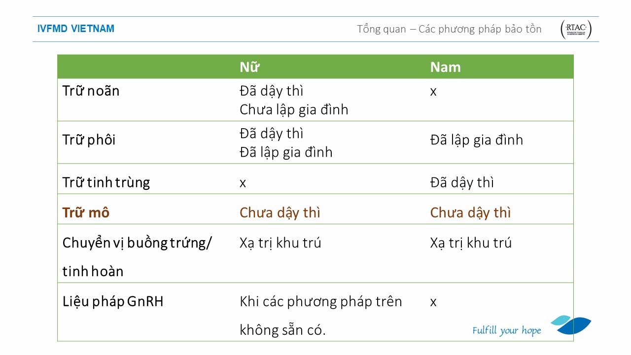Bảo tồn khả năng sinh sản: Kinh nghiệm thực tế tại Việt Nam