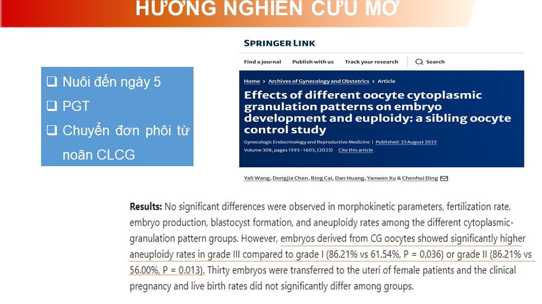 Bất thường bào tương noãn có hạt trung tâm ảnh hưởng đến kết cục của thụ tinh trong ống nghiệm