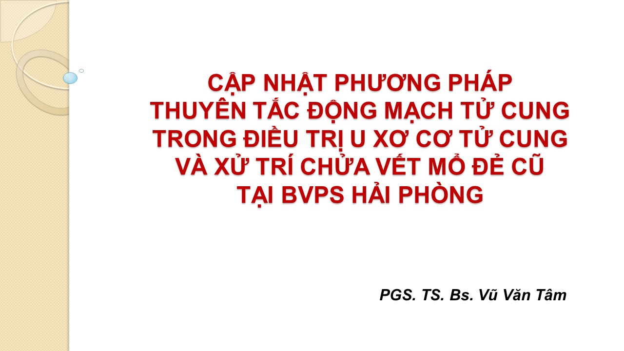 Cập nhật phương pháp thuyên tắc động mạch tử cung trong điều trị u xơ cơ tử cung và xử trí chửa vết mổ đẻ cũ tại BVPS Hải Phòng 10/12/2020 33 Lượt xem PGS TS BS Vũ Văn Tâm Từ khóa: Cập nhật phương pháp thuyên tắc động mạch tử cung trong điều trị u xơ cơ tử cung và xử trí chửa vết mổ đẻ cũ tại BVPS Hải Phòng Chia sẻ bài viết: Zalo