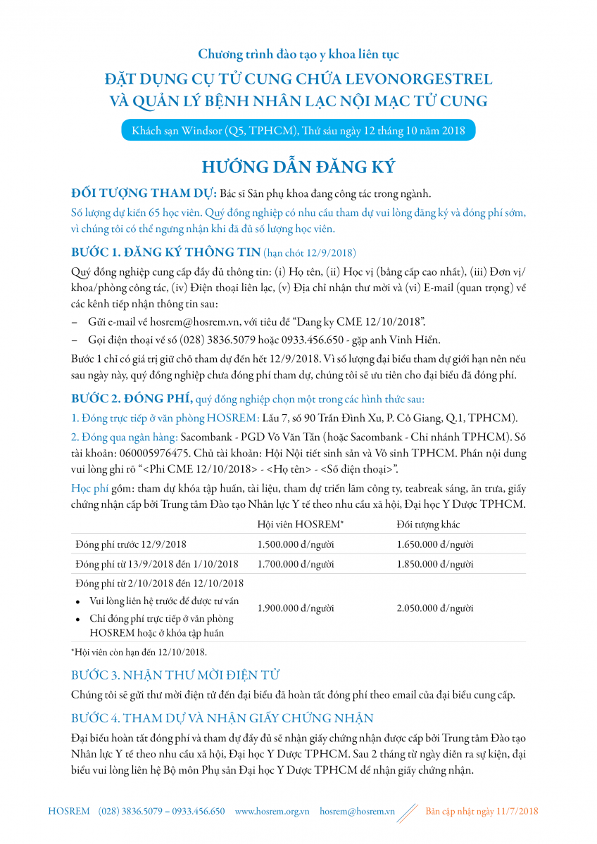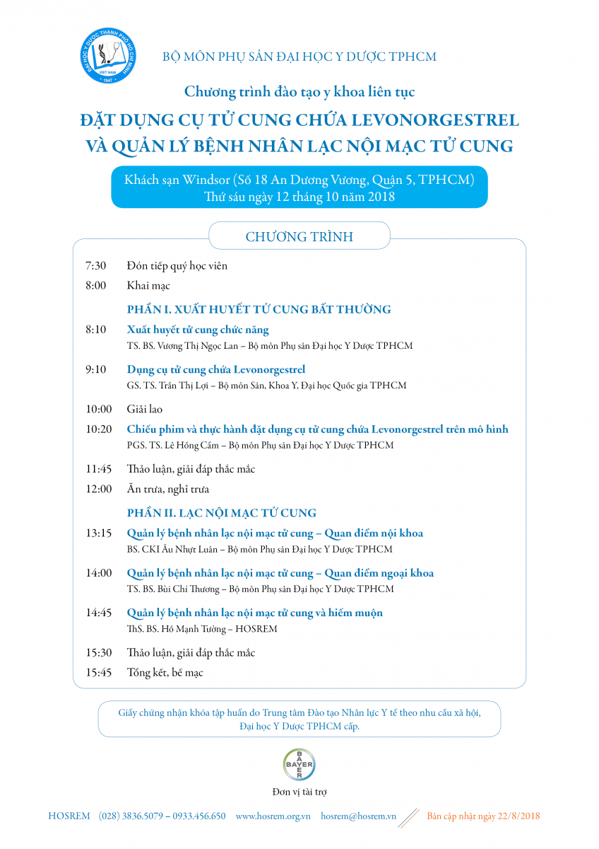 Chương trình đào tạo y khoa liên tục ĐẶT DỤNG CỤ TỬ CUNG CHỨA LEVONORGESTREL VÀ QUẢN LÝ BỆNH NHÂN LẠC NỘI MẠC TỬ CUNG 22/08/2018 46 Lượt xem Khách sạn Windsor, thứ sáu ngày 12 tháng 10 năm 2018 Chia sẻ bài viết: Zalo