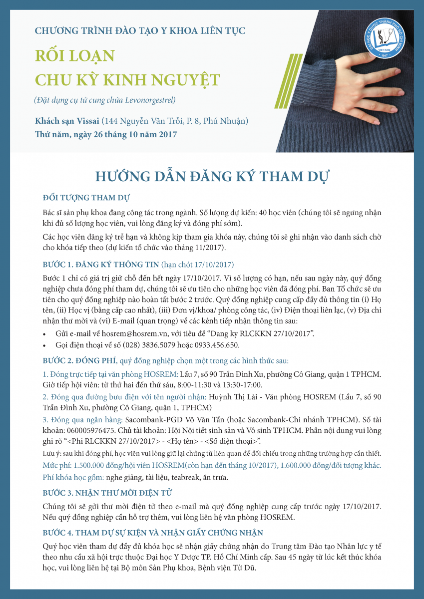 Chương trình đào tạo y khoa liên tục "Rối loạn chu kỳ kinh nguyệt" 04/10/2017 24 Lượt xem Bác sĩ sản phụ khoa đang công tác trong ngành. Số lượng dự kiến 40 học viên Từ khóa: Chương trình đào tạo y khoa liên tục "Rối loạn chu kỳ kinh nguyệt" Chia sẻ bài viết: Zalo