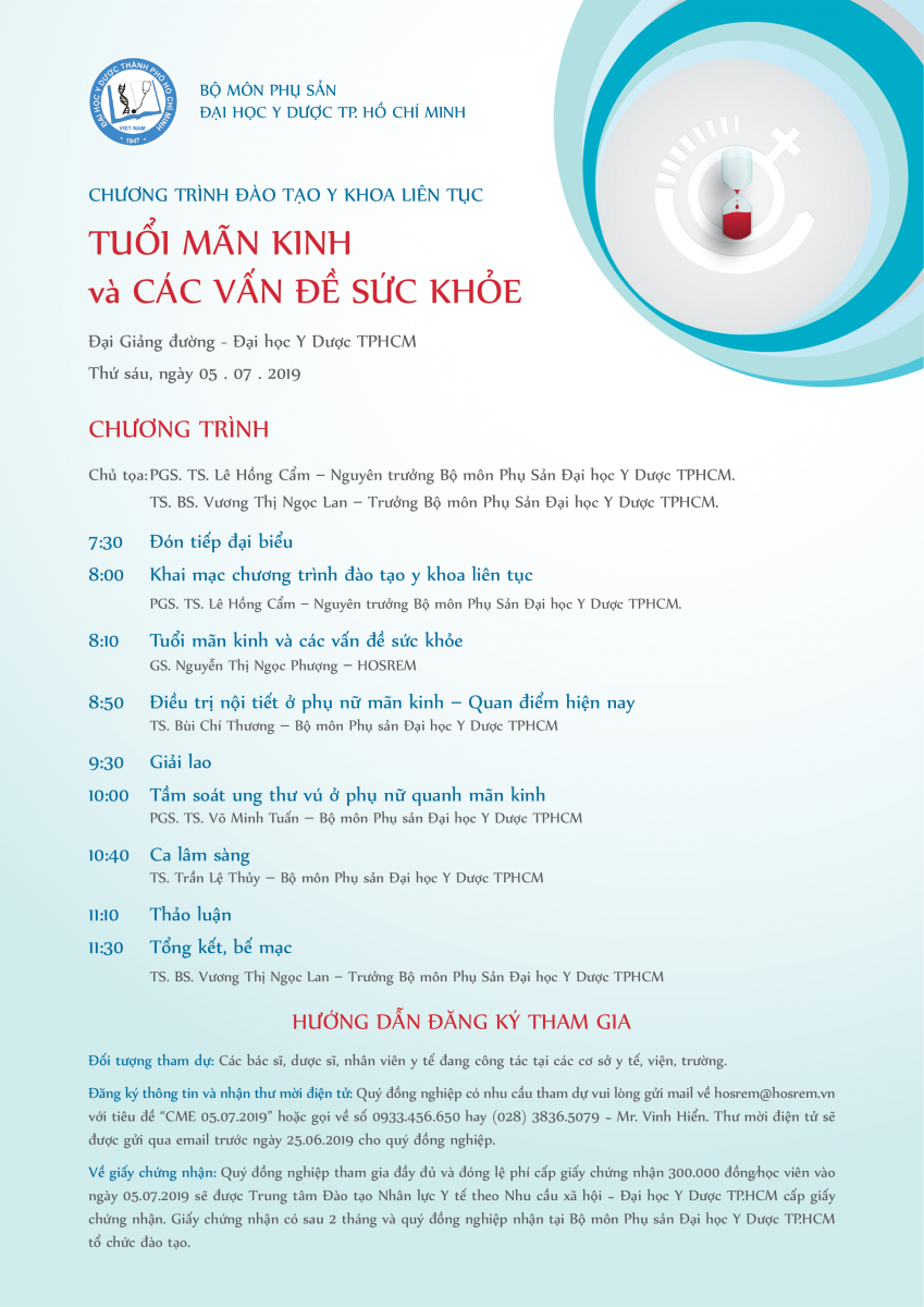 CHƯƠNG TRÌNH ĐÀO TẠO Y KHOA LIÊN TỤC - TUỔI MÃN KINH và CÁC VẤN ĐỀ SỨC KHỎE 10/06/2019 46 Lượt xem Đại học Y Dược TPHCM - Thứ sáu, ngày 05 . 07 . 2019 Từ khóa: CHƯƠNG TRÌNH ĐÀO TẠO Y KHOA LIÊN TỤC - TUỔI MÃN KINH và CÁC VẤN ĐỀ SỨC KHỎE Chia sẻ bài viết: Zalo
