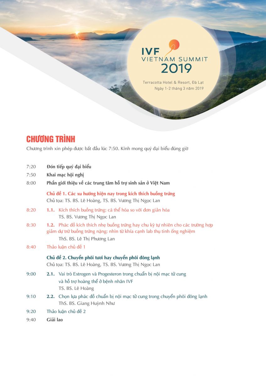 Chương trình IVF Việt Nam Summit 2019 22/02/2019 55 Lượt xem Terracotta Hotel & Resort - Đà Lạt, ngày 1-2 tháng 3 năm 2019 Từ khóa: Chương trình IVF Việt Nam Summit 2019 Chia sẻ bài viết: Zalo