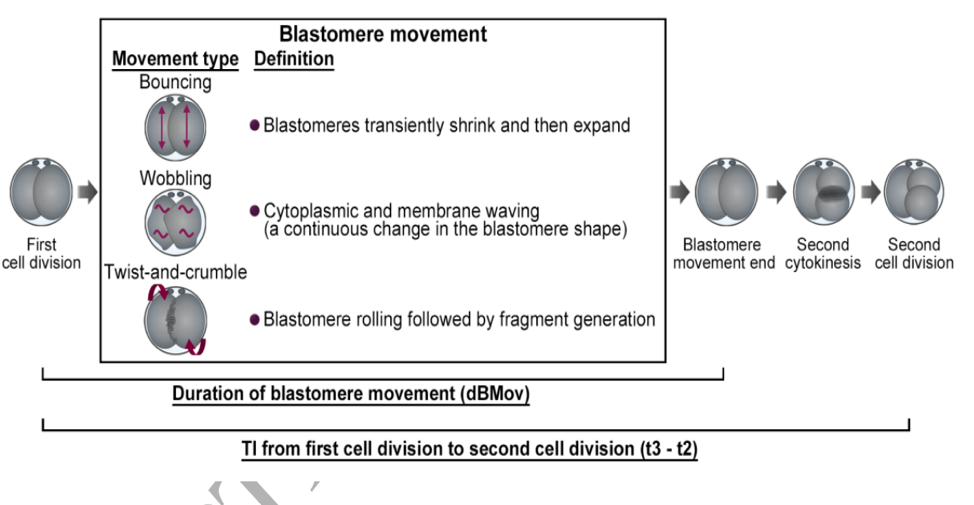 Sự chuyển động của phôi bào (blastomere movement - BMov) xảy ra sau khi tế bào phân chia lần đầu tiên ghi nhận bằng hệ thống time-lapse. Đã có báo cáo cho rằng tiềm năng phát triển đến phôi nang không bị ảnh hưởng bởi chuyển động phôi bào sau lần phân bào thứ nhất (Yang và cs., 2015). Ngược lại, sự chuyển động phôi bào sau lần phân bào thứ nhất có tương quan xấu với sự phát triển phôi (Ebner và cs., 2017). Hơn nữa, có rất ít nghiên cứu mối tương quan của BMov với kết cục thai kỳ.