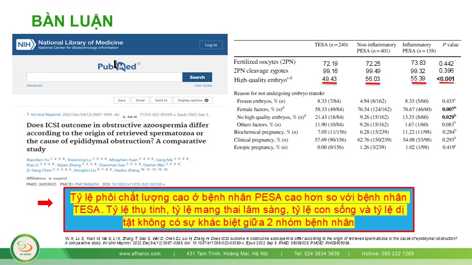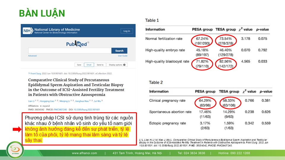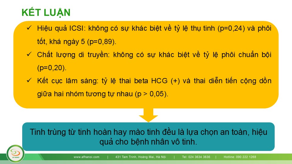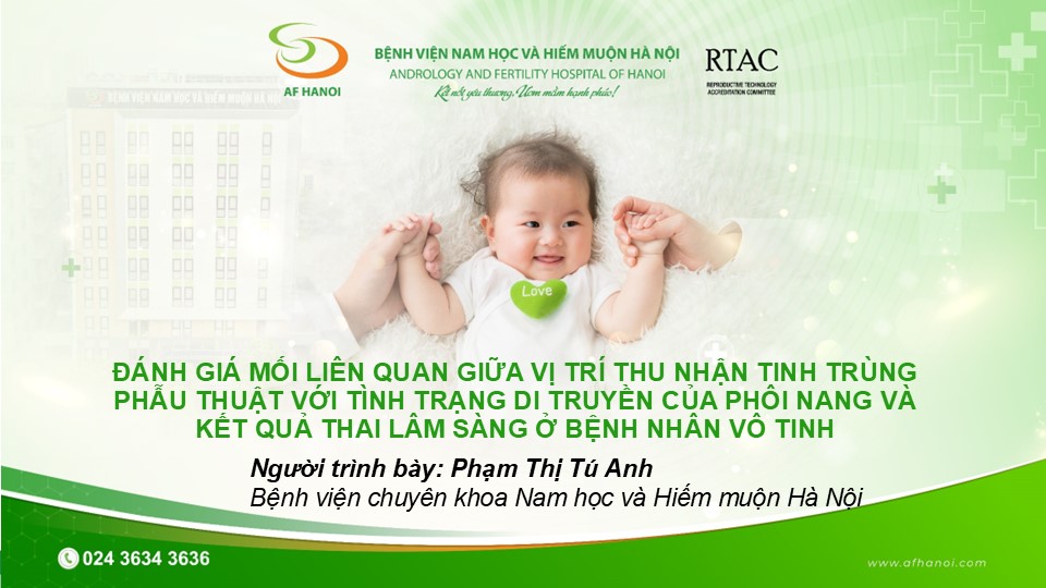 Đánh giá mối liên quan giữa vị trí thu nhận tinh trùng phẫu thuật với tình trạng di truyền của phôi nang và kết quả thai lâm sàng ở bệnh nhân vô tinh do bế tắc