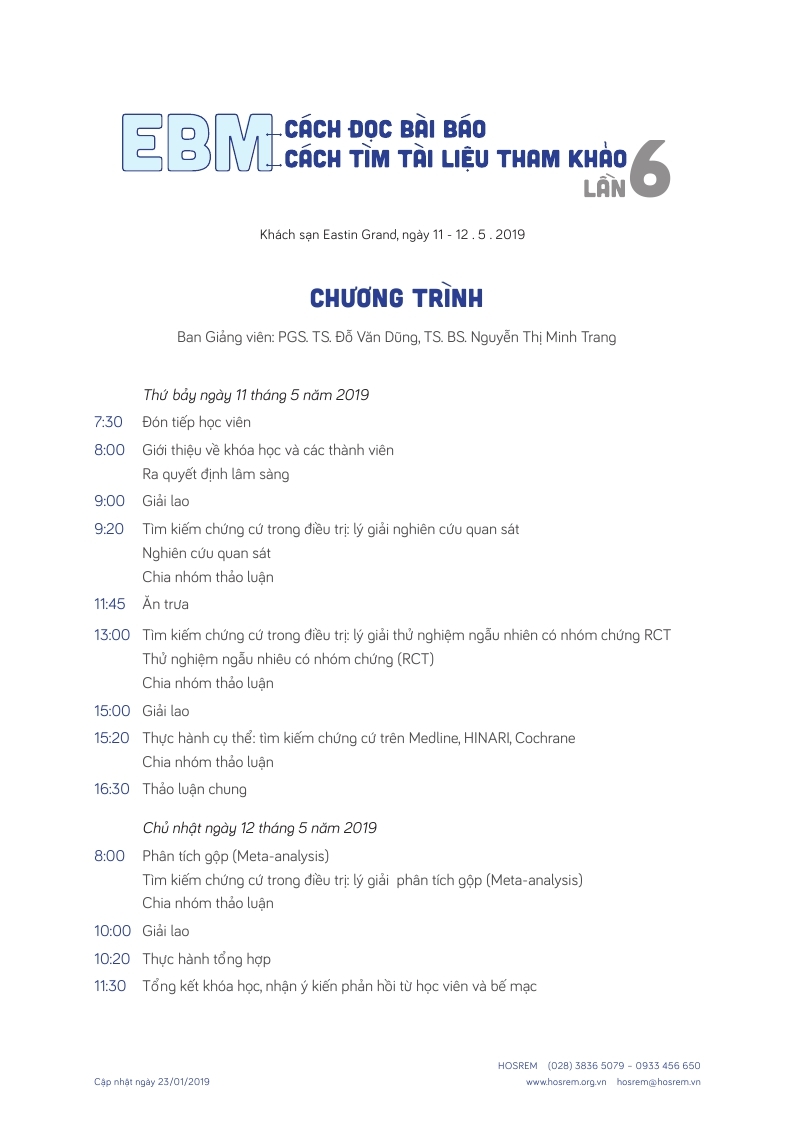 EBM: Cách đọc bài báo và cách tìm tài liệu tham khảo lần 6 24/01/2019 38 Lượt xem Thứ 7 ngày 11 tháng 5 (từ 8:00 đến 16:30) tại Khách sạn Eastin Grand - Số 253 Nguyễn Văn Trỗi, Quận Phú Nhuận, TPHCM Từ khóa: EBM: Cách đọc bài báo và cách tìm tài liệu tham khảo lần 6 Chia sẻ bài viết: Zalo