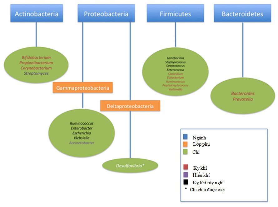 Hình 1. Phân loại các vi khuẩn thường gặp trong hệ khuẩn ruột ở trẻ sơ sinh