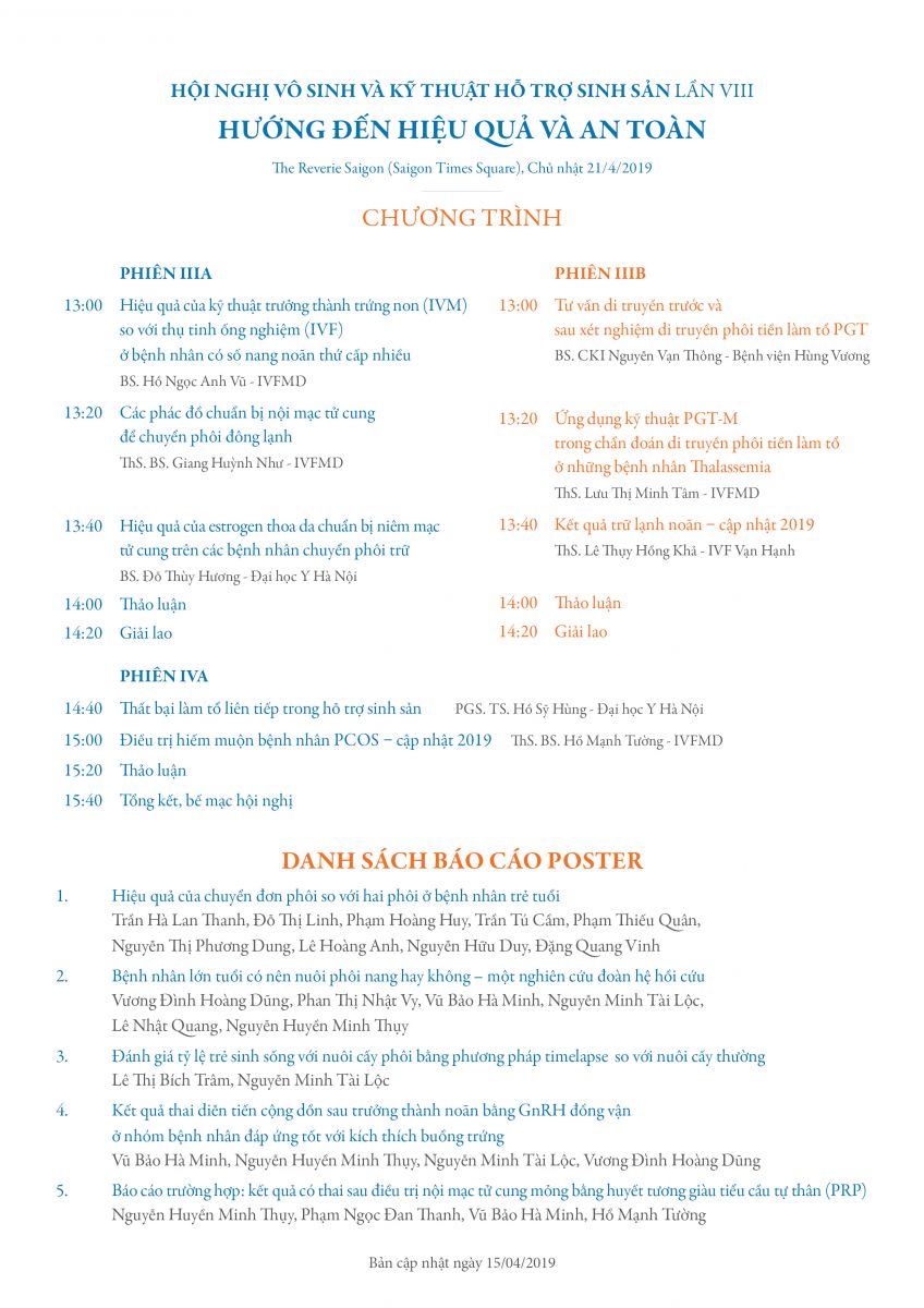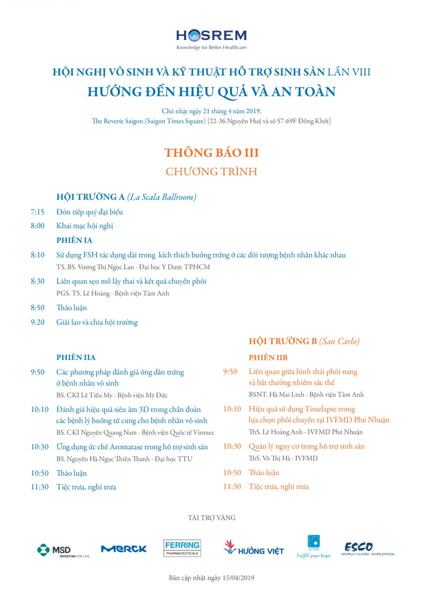 Hội nghị vô sinh và kỹ thuật hỗ trợ sinh sản lần VIII 16/04/2019 33 Lượt xem The Reverie Saigon, Chủ nhật 21/4/2019 Từ khóa: Hội nghị vô sinh và kỹ thuật hỗ trợ sinh sản lần VIII Chia sẻ bài viết: Zalo