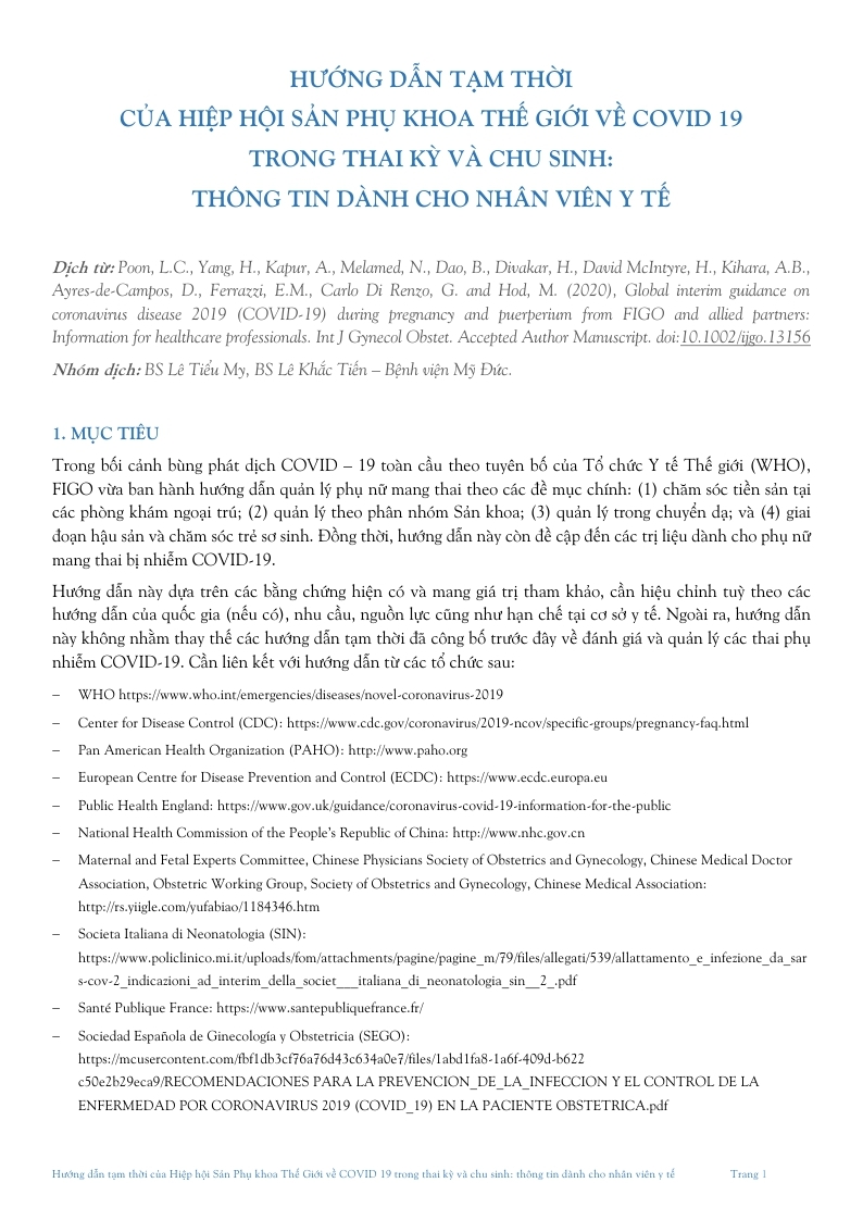 Hướng dẫn tạm thời của hiệp hội sản phụ khoa thế giới về COVID 19 trong thai kỳ và chu sinh: Thông tin dành cho nhân viên y tế 29/04/2020 36 Lượt xem Tải bản đầy đủ ở đây. Từ khóa: Hướng dẫn tạm thời của hiệp hội sản phụ khoa thế giới về COVID 19 trong thai kỳ và chu sinh: Thông tin dành cho nhân viên y tế Chia sẻ bài viết: Zalo