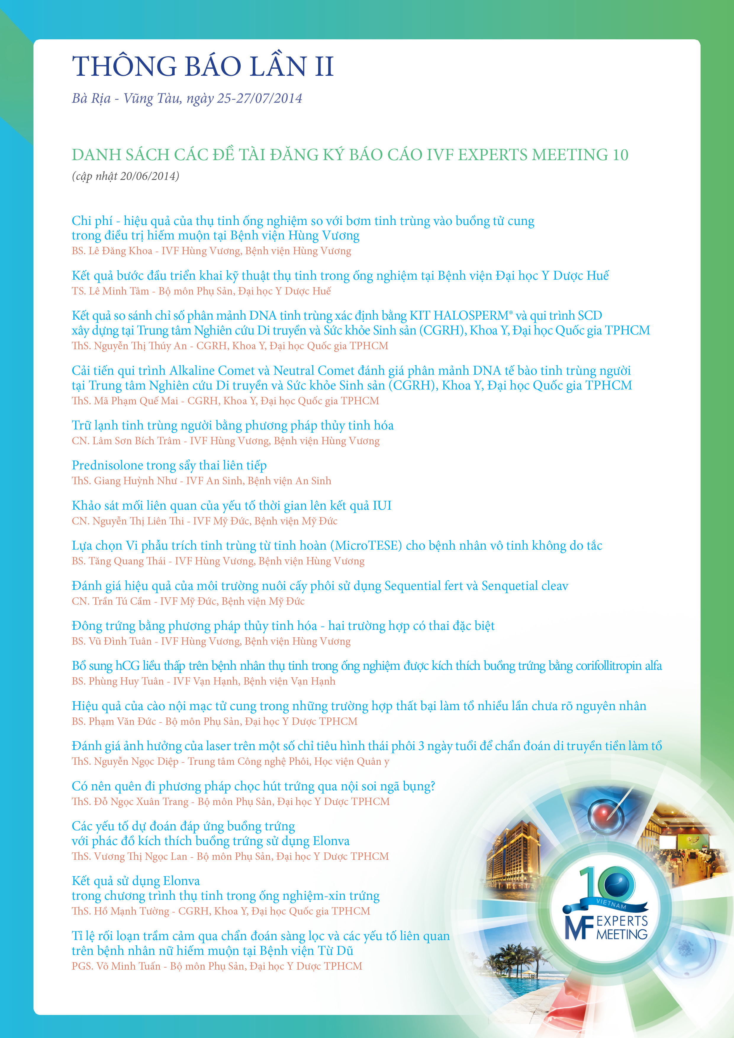 IVF EXPERTS MEETING 10 23/06/2014 135 Lượt xem <p style="text-align: center;"><span style="font-size: 10pt;"><strong>IVF EXPERTS MEETING 10</strong></span></p> Chia sẻ bài viết: Zalo