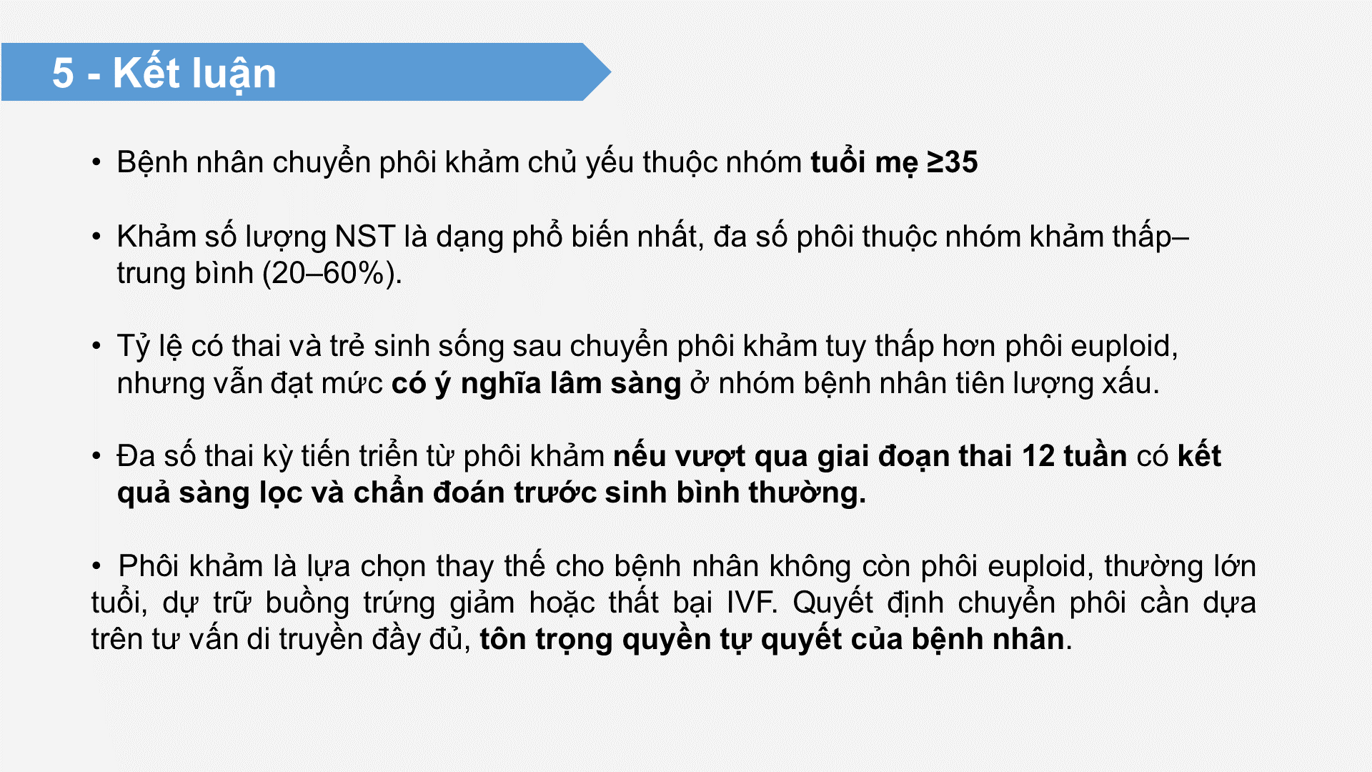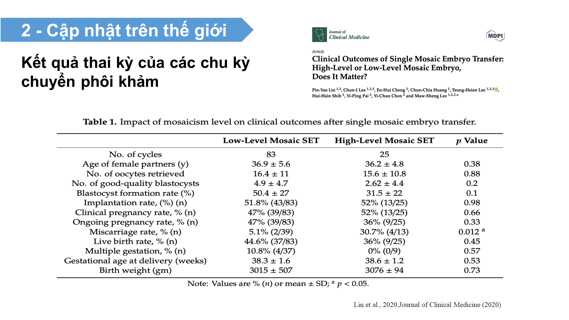Kết cục thai kỳ ở bệnh nhân chuyển phôi khảm trong kỹ thuật IVF/ICSI