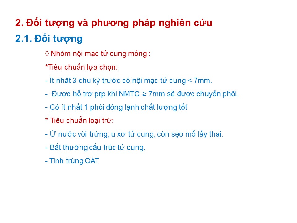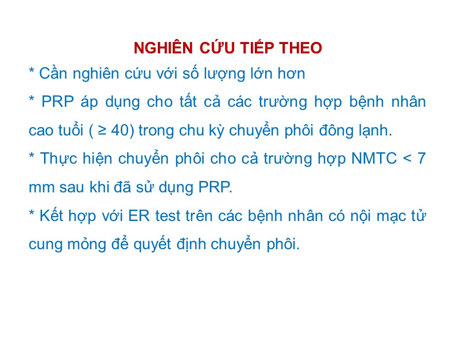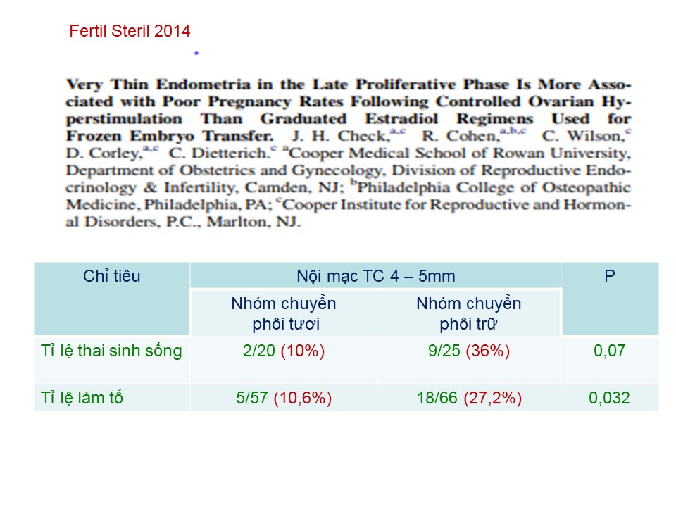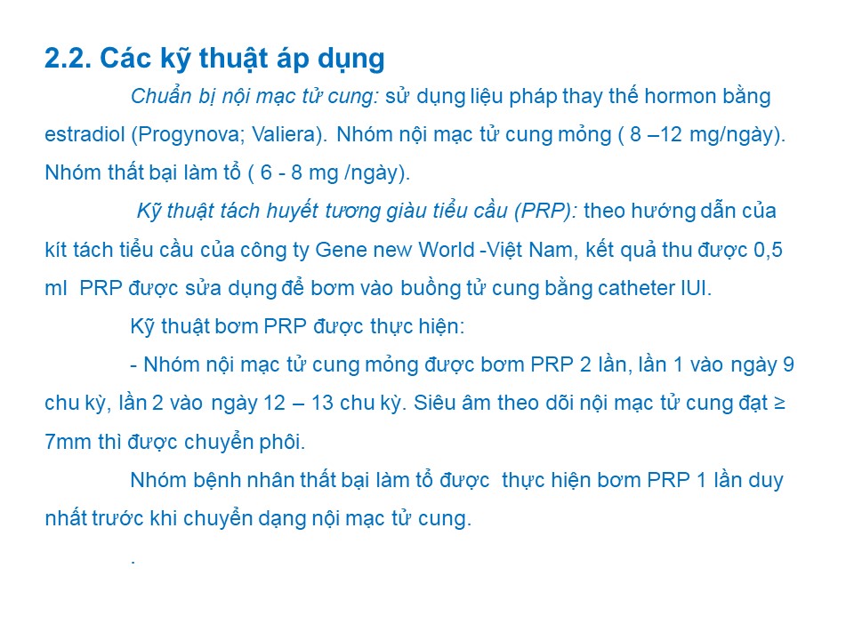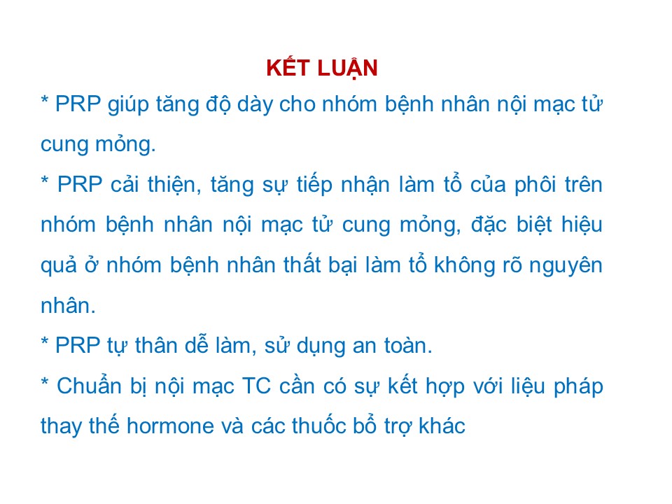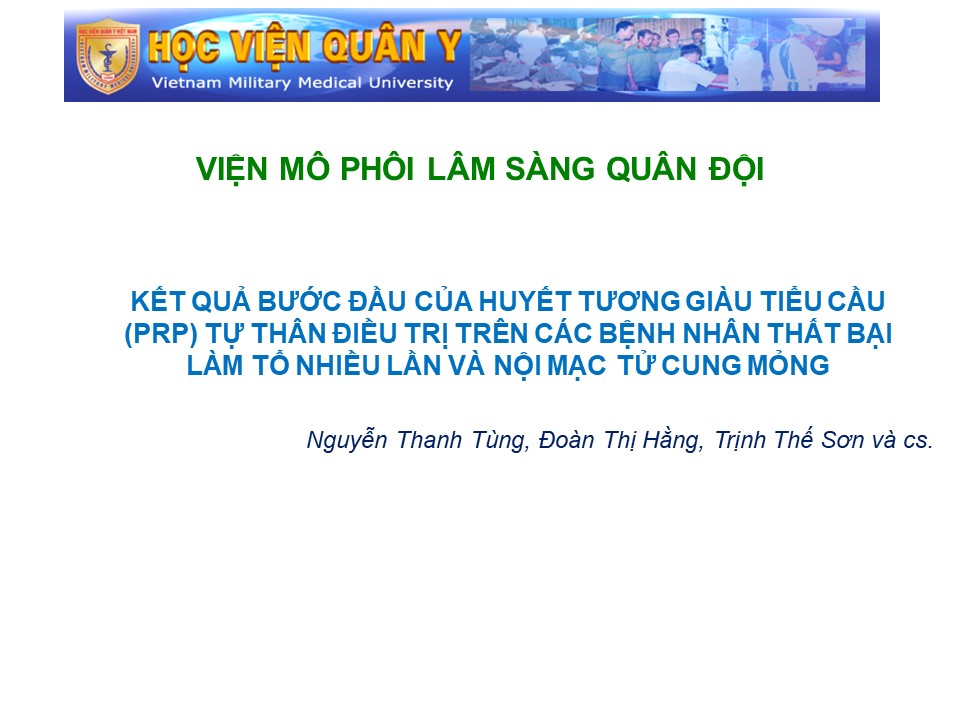 Kết quả bước đầu của huyết tương giàu tiểu cầu (PRP) tự thân điều trị trên các bệnh nhân thất bại làm tổ nhiều lần và nội mạc tử cung mỏng 25/11/2020 28 Lượt xem Nguyễn Thanh Tùng, Đoàn Thị Hằng, Trịnh Thế Sơn và cs Từ khóa: Kết quả bước đầu của huyết tương giàu tiểu cầu (PRP) tự thân điều trị trên các bệnh nhân thất bại làm tổ nhiều lần và nội mạc tử cung mỏng Chia sẻ bài viết: Zalo