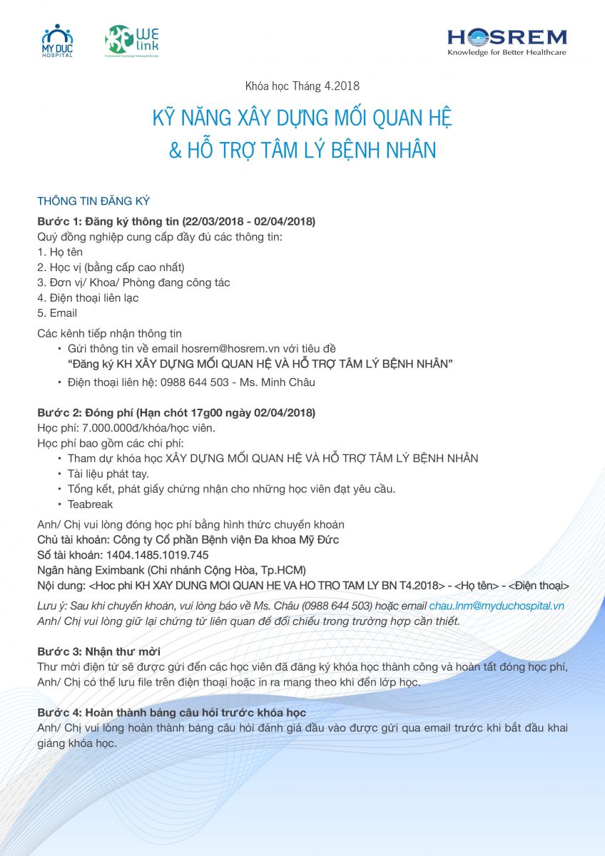 Khóa học "Kỹ năng xây dựng mối quan hệ & hỗ trợ tâm lý bệnh nhân" 27/03/2018 43 Lượt xem Khóa tháng 4/2018 Từ khóa: Khóa học "Kỹ năng xây dựng mối quan hệ & hỗ trợ tâm lý bệnh nhân" Chia sẻ bài viết: Zalo