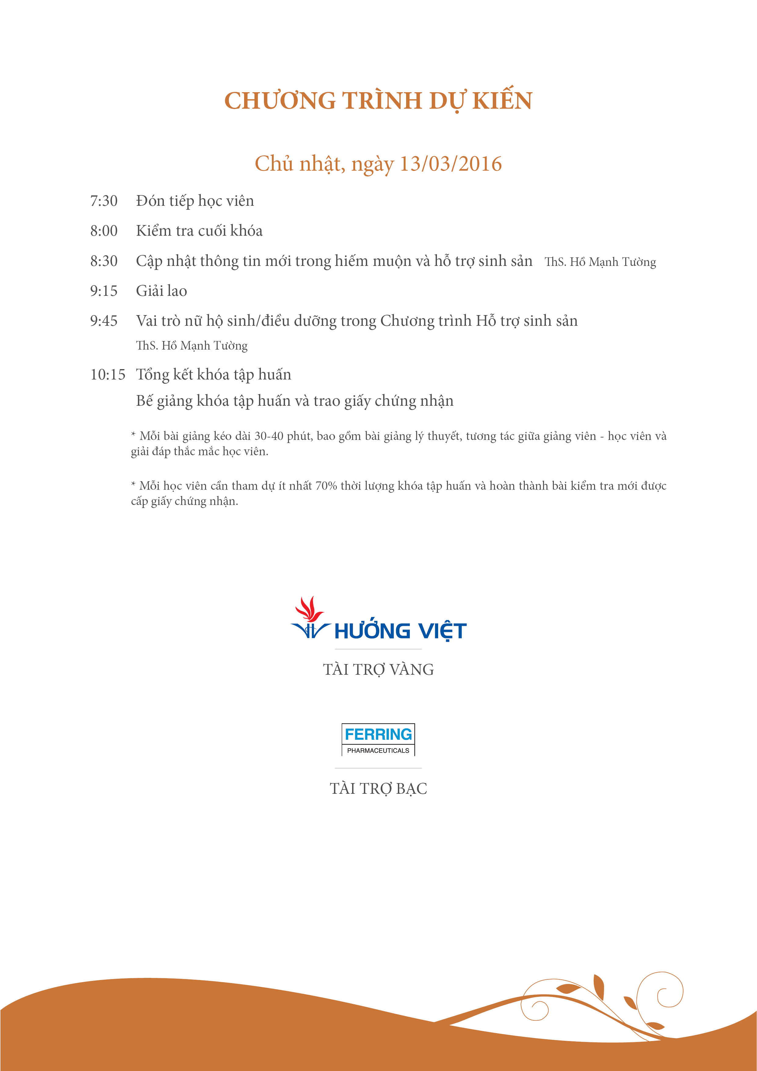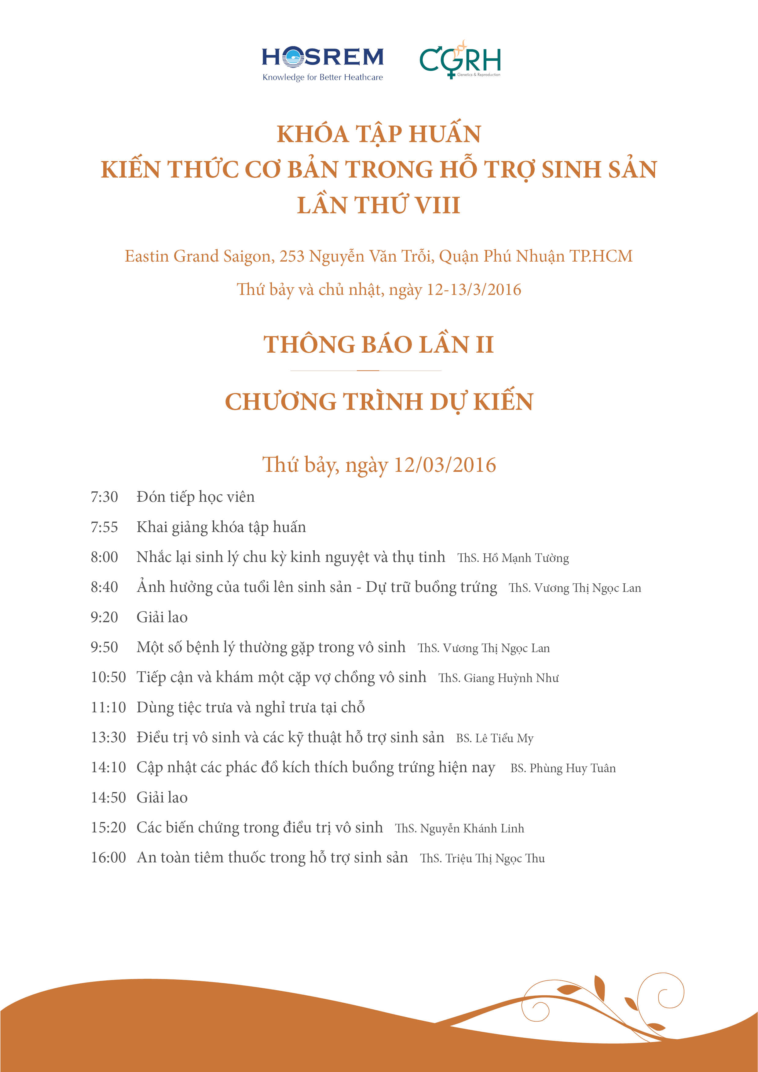 TP.HCM, ngày 12 và 13 tháng 3 năm 2016, khóa tập huấn nhằm cung cấp những kiến thức cơ bản và cần thiết cho nữ hộ sinh, điều dưỡng và các nhân viên y tế trên cả nước.