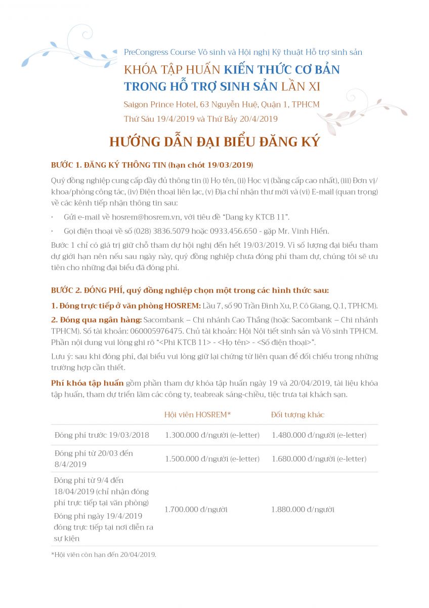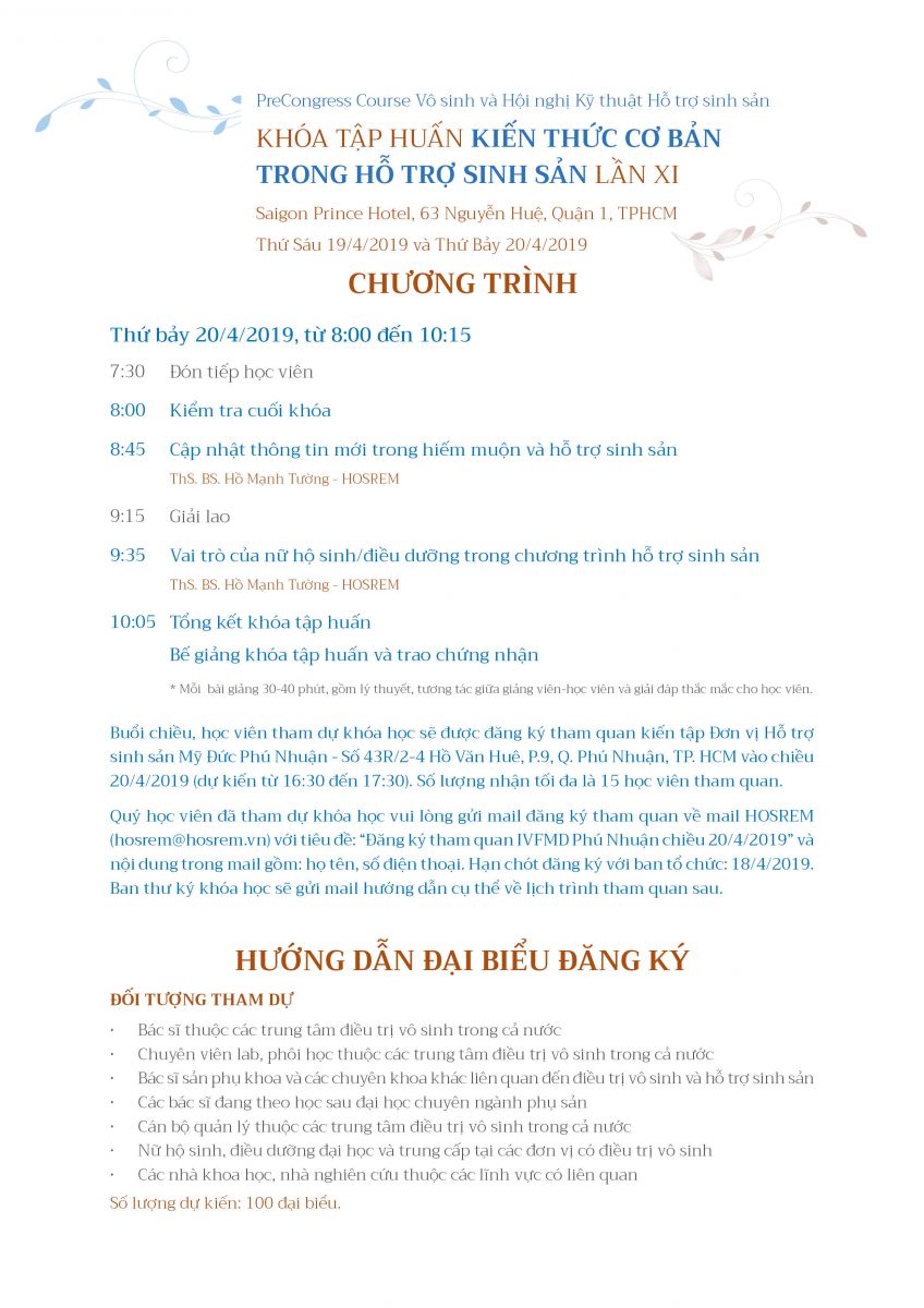 Khóa tập huấn "KIẾN THỨC CƠ BẢN TRONG HỖ TRỢ SINH SẢN LẦN XI" 05/04/2019 38 Lượt xem TPHCM, Thứ Sáu 19/4/2019 và Thứ Bảy 20/4/2019 Từ khóa: Khóa tập huấn "KIẾN THỨC CƠ BẢN TRONG HỖ TRỢ SINH SẢN LẦN XI" Chia sẻ bài viết: Zalo