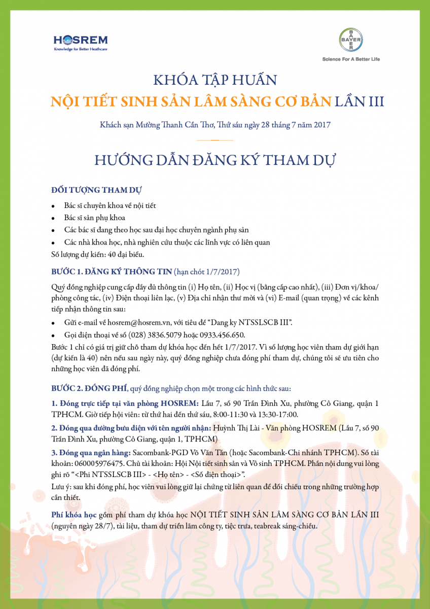 Khóa tập huấn Nội tiết sinh sản lâm sàng cơ bản lần III 22/06/2017 23 Lượt xem Khách sạn Mường anh Cần Thơ, Thứ sáu ngày 28 tháng 7 năm 2017 Từ khóa: Khóa tập huấn Nội tiết sinh sản lâm sàng cơ bản lần III Chia sẻ bài viết: Zalo