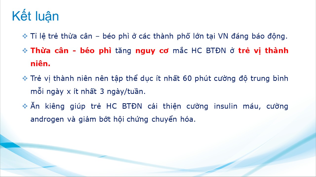 Lợi ích của giảm cân và thay đổi lối sống trong quản lý hội chứng buồng trứng đa nang ở trẻ vị thành niên 20/12/2024 31 Lượt xem TS.BS. Lý Đại Lương - Trường Đại học Khoa học Sức khỏe, Đại học Quốc Gia TP HCM Từ khóa: Lợi ích của giảm cân và thay đổi lối sống trong quản lý hội chứng buồng trứng đa nang ở trẻ vị thành niên Chia sẻ bài viết: Zalo