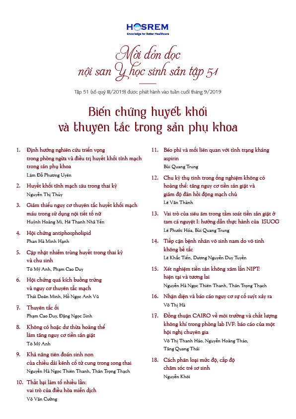 Mời đón đọc Y học sinh sản số 51 - "Biến chứng huyết khối và thuyên tắc trong sản phụ khoa"