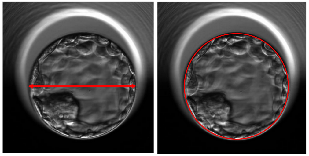 Nghiên cứu này có thiết kế hồi cứu được thực hiện trên 664 chu kỳ IVF/ICSI, sử dụng noãn tự thân và thực hiện chuyển đơn phôi chọn lọc (chuyển phôi tươi) vào ngày 5 (khoảng 112-118 giờ sau thụ tinh). Nghiên cứu viên đã sử dụng phần mềm đi kèm tủ timelapse để đo kích thước đường kính của phôi, đường kính tối đa được xác định bằng cách thực hiện đo bốn lần trên cùng một mặt phẳng quan sát (không tính màng ZP). Bốn mươi bốn phôi nang bị loại khỏi nghiên cứu do lệch khỏi khu vực quan sát của tủ. Những đo đạc này được thực hiện trước khi chuyển phôi và được sử dụng khi phân tích với tỷ lệ thai lâm sàng.