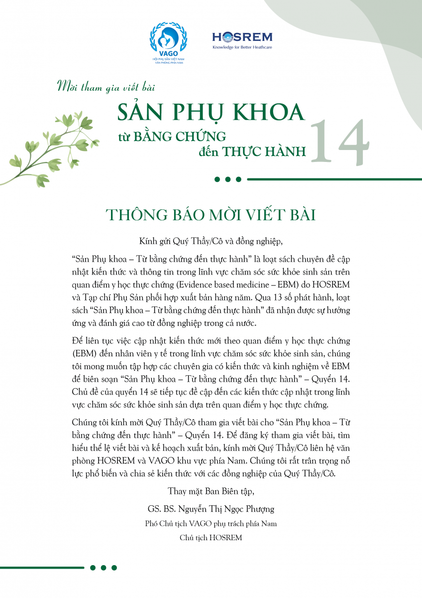 Mời viết bài Sách Sản Phụ khoa - Từ Bằng chứng đến Thực hành - Quyển 14 23/10/2023 132 Lượt xem Vui lòng gửi bài trước 31 . 1 . 2024 Mời viết bài Sách Sản Phụ khoa - Từ Bằng chứng đến Thực hành - Quyển 14 Từ khóa: EBM 14 Chia sẻ bài viết: Zalo