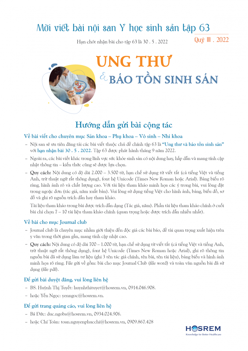 Hướng dẫn gửi bài cộng tác Y học sinh sản số 63 (Quý III . 2022)