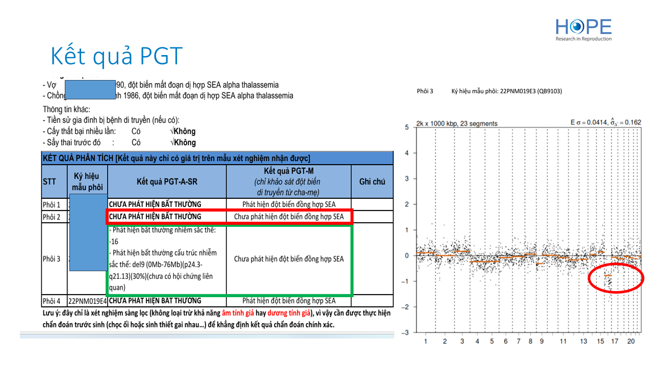 Mức độ tương đồng giữa kết quả sàng lọc di truyền tiền làm tổ và di truyền thai: báo cáo trường hợp chuyển phôi monosomy 16 và mất đoạn 9p24.3 - q21.13 dạng khảm có kết cục sinh sống khỏe mạnh