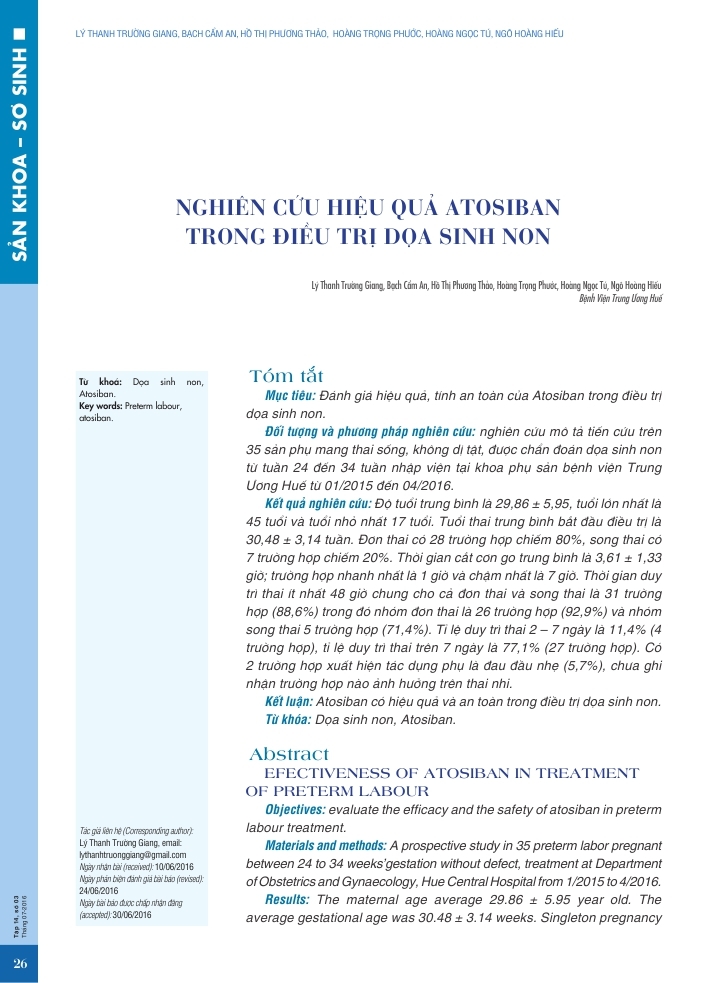 Nghiên cứu hiệu quả ATOSIBAN trong điều trị dọa sinh non 26/09/2016 13 Lượt xem Từ khóa: Nghiên cứu hiệu quả ATOSIBAN trong điều trị dọa sinh non Chia sẻ bài viết: Zalo