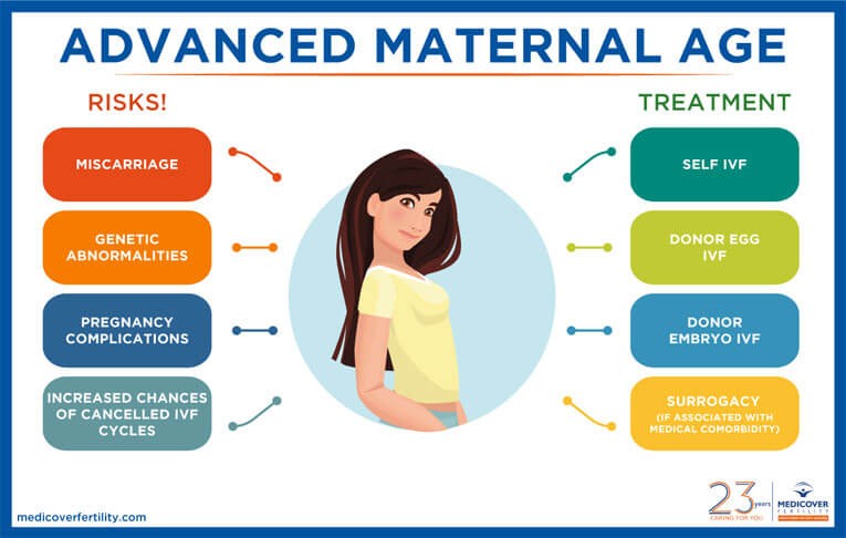 Ở phụ nữ, khả năng sinh sản phụ thuộc nhiều vào độ tuổi của họ, tuổi càng cao càng ảnh hưởng xấu đến dự trữ buồng trứng, chất lượng noãn cũng như dễ mắc các biến chứng thai kỳ và đặc biệt làm tăng tỉ lệ lệch bội - đây là yếu tố đóng vai trò quan trọng trong việc gây vô sinh ở phụ nữ lớn tuổi. Trong sự sinh noãn ở phụ nữ lớn tuổi, các nghiên cứu quan sát thấy có sự kéo dài trạng thái dừng phân chia của noãn làm tăng sai hỏng trong phân ly nhiễm sắc thể. Ngoài ra còn có mối tương quan giữa tăng tuổi mẹ và tần suất xuất hiện lệch bội nhiễm sắc thể, điển hình là hội chứng Down, dẫn đến tăng nguy cơ sẩy thai tự phát.