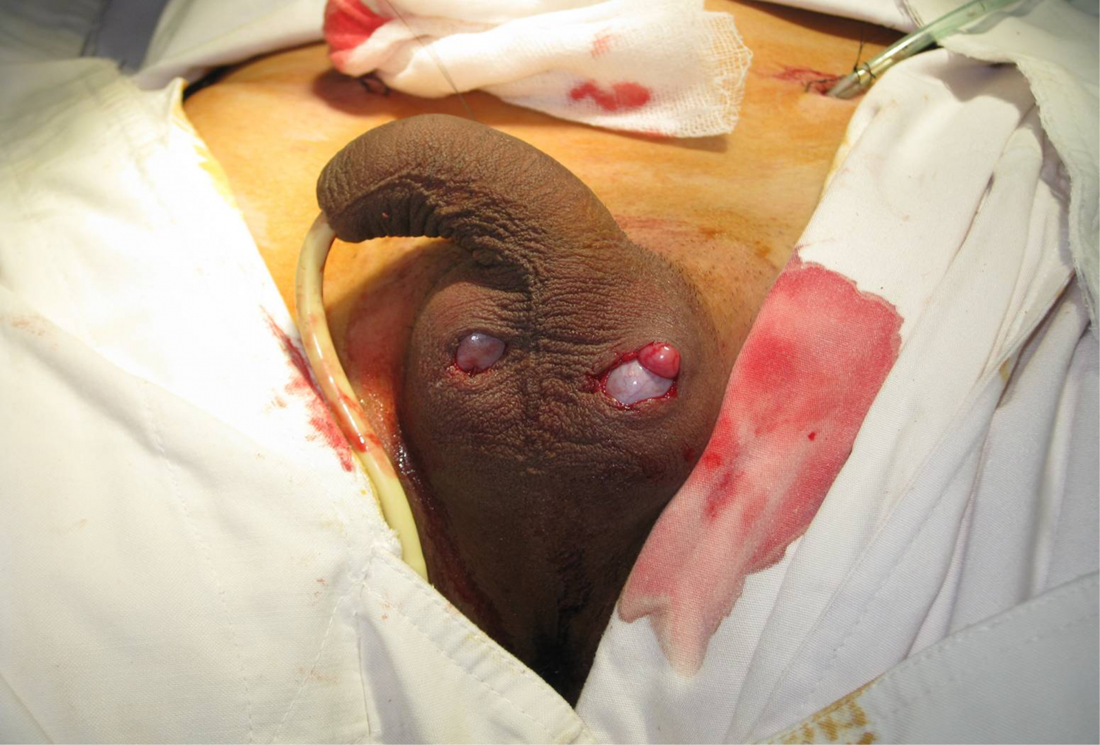 Hình 1. Hai tinh hoàn trong ổ bụng nằm gần lỗ bẹn sâu |