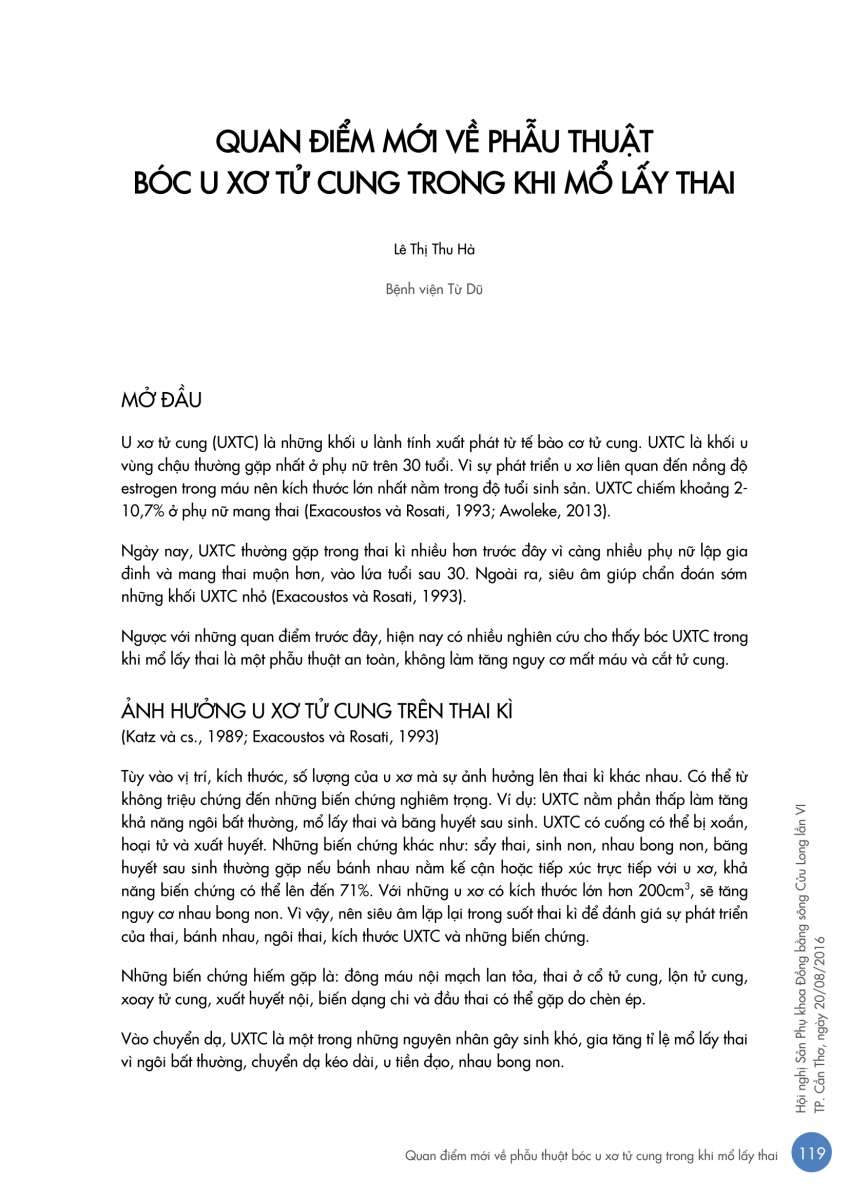 Quan điểm mới về phẫu thuật bóc u xơ tử cung trong khi mổ lấy thai 04/09/2016 47 Lượt xem Từ khóa: u xơ tử cungmổ lấy thai Chia sẻ bài viết: Zalo