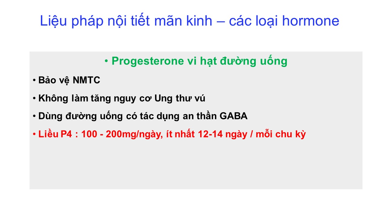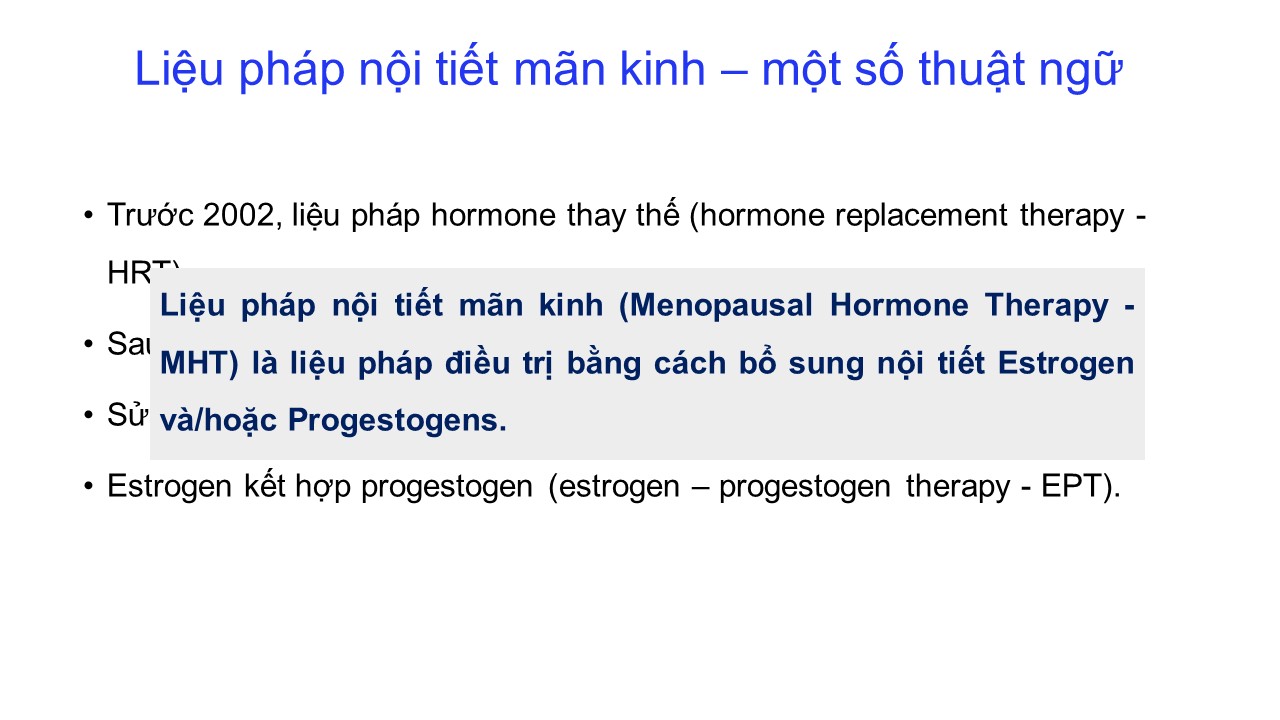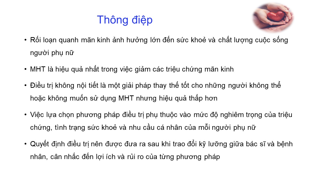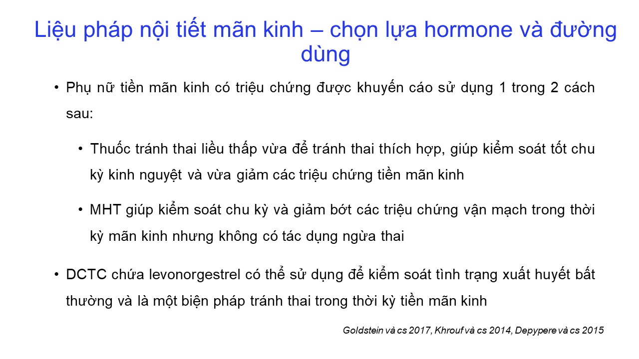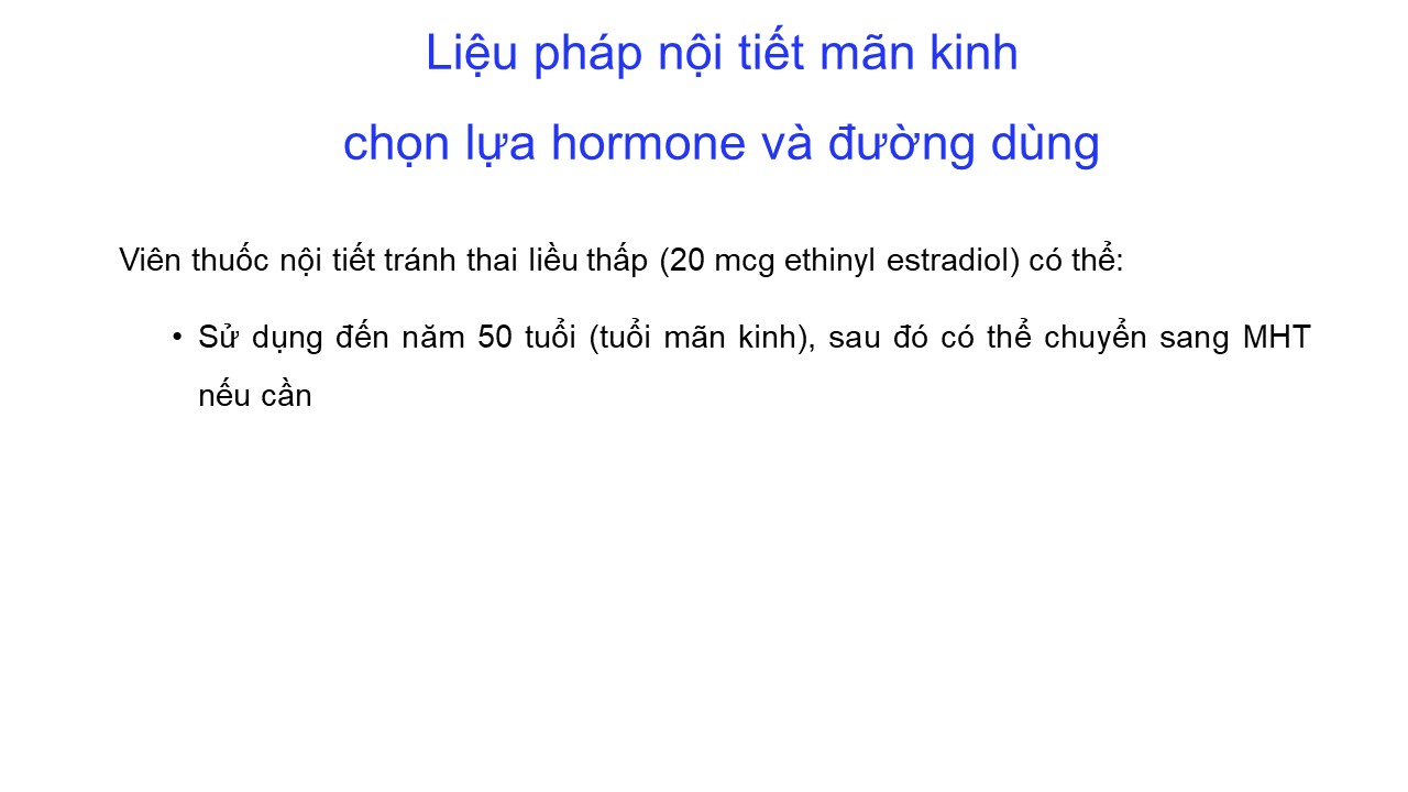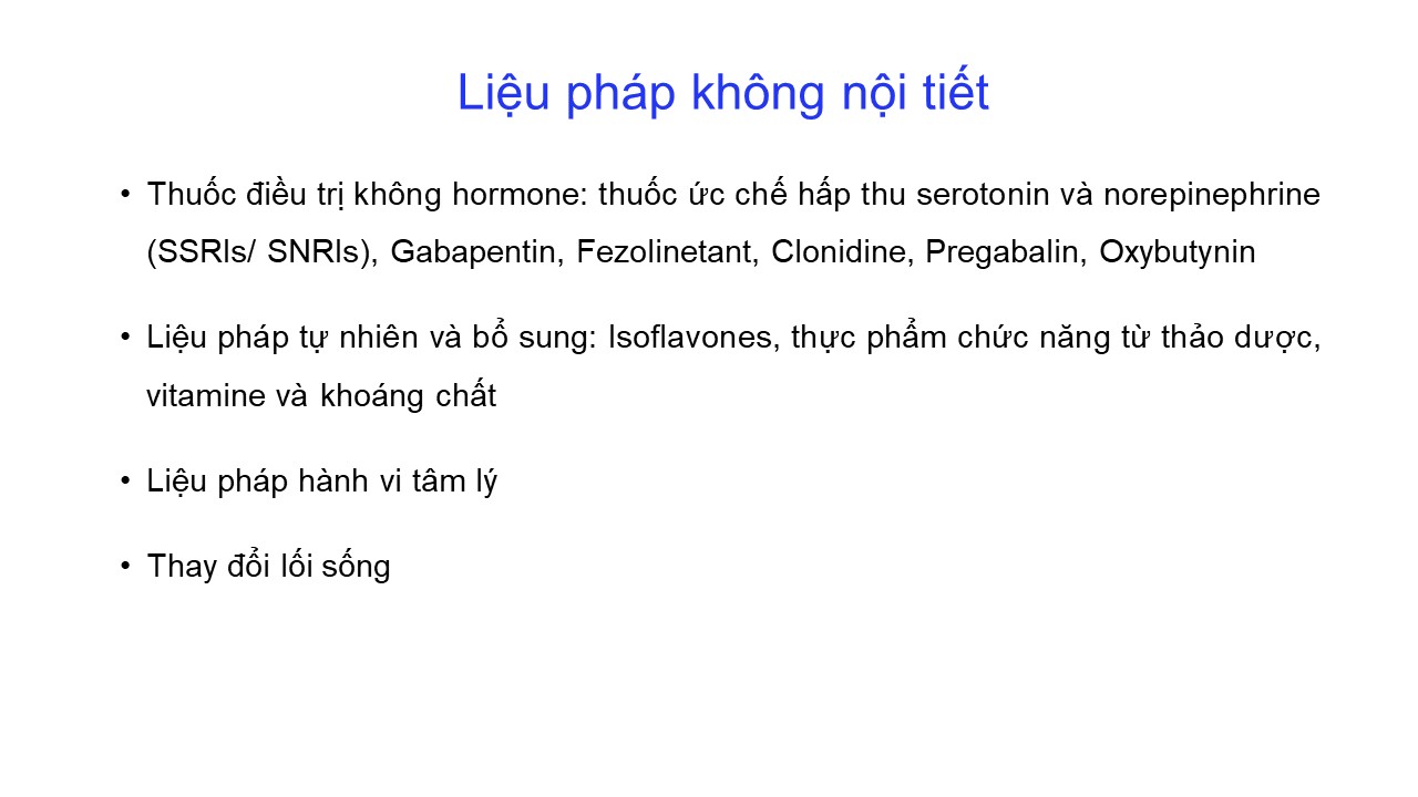 Rối loạn quanh mãn kinh: điều trị nội tiết và không nội tiết 20/12/2024 47 Lượt xem BS CKII Vương Tú Như - Bệnh viện Mỹ Đức – TP. Hồ Chí Minh Từ khóa: Rối loạn quanh mãn kinh: điều trị nội tiết và không nội tiết Chia sẻ bài viết: Zalo