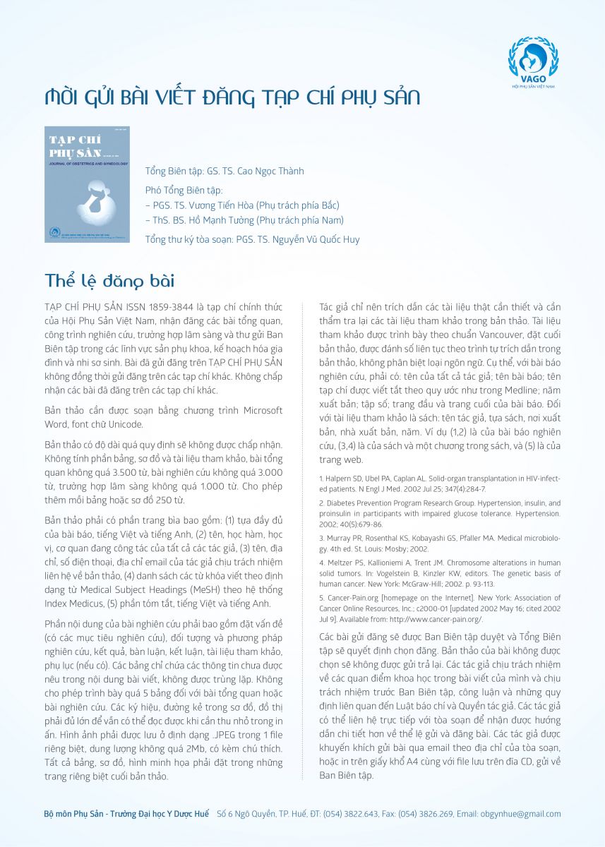 MỜI GỬI BÀI VIẾT ĐĂNG TẠP CHÍ PHỤ SẢN