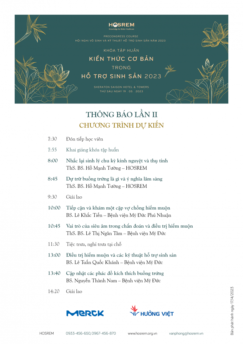 Thông báo lần II - Khóa tập huấn Kiến thức cơ bản trong Hỗ trợ sinh sản năm 2023 25/04/2023 94 Lượt xem Sheraton Saigon Hotel & Towers, Thứ sáu 19 . 5 . 2023 Thông báo lần I - Khóa tập huấn Kiến thức cơ bản trong Hỗ trợ sinh sản năm 2023 Sheraton Saigon Hotel & Towers, Thứ sáu 19 . 5 . 2023 Từ khóa: kiến thức cơ bảnhỗ trợ sinh sản Chia sẻ bài viết: Zalo