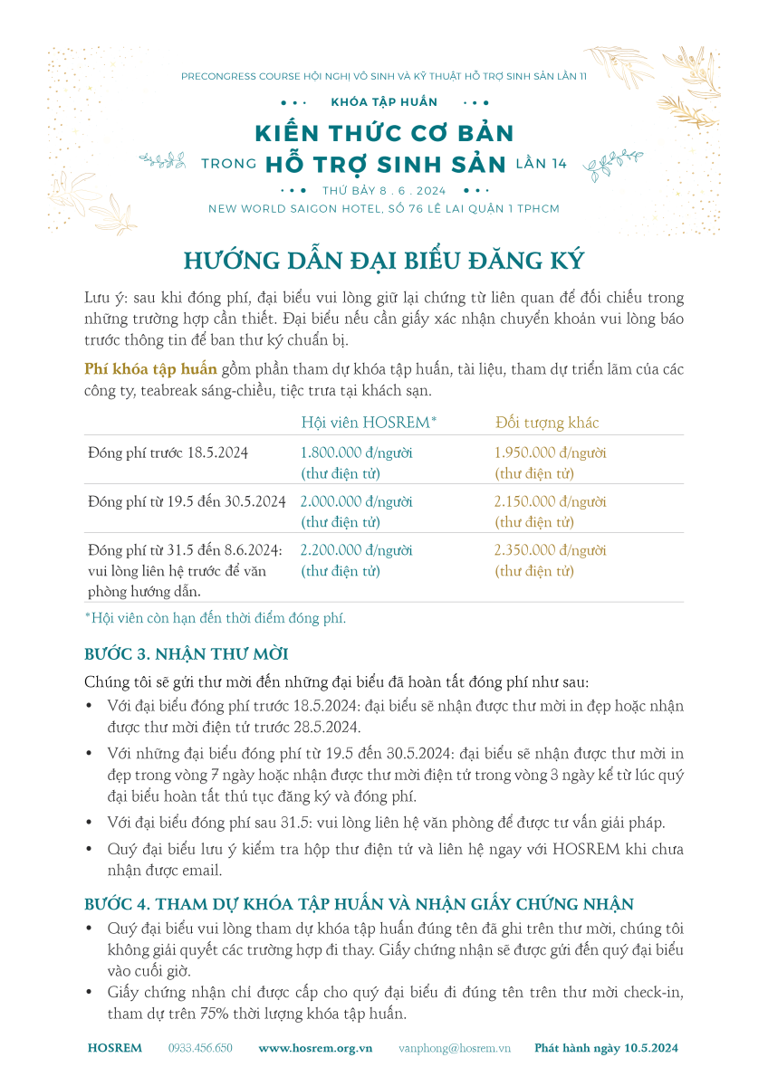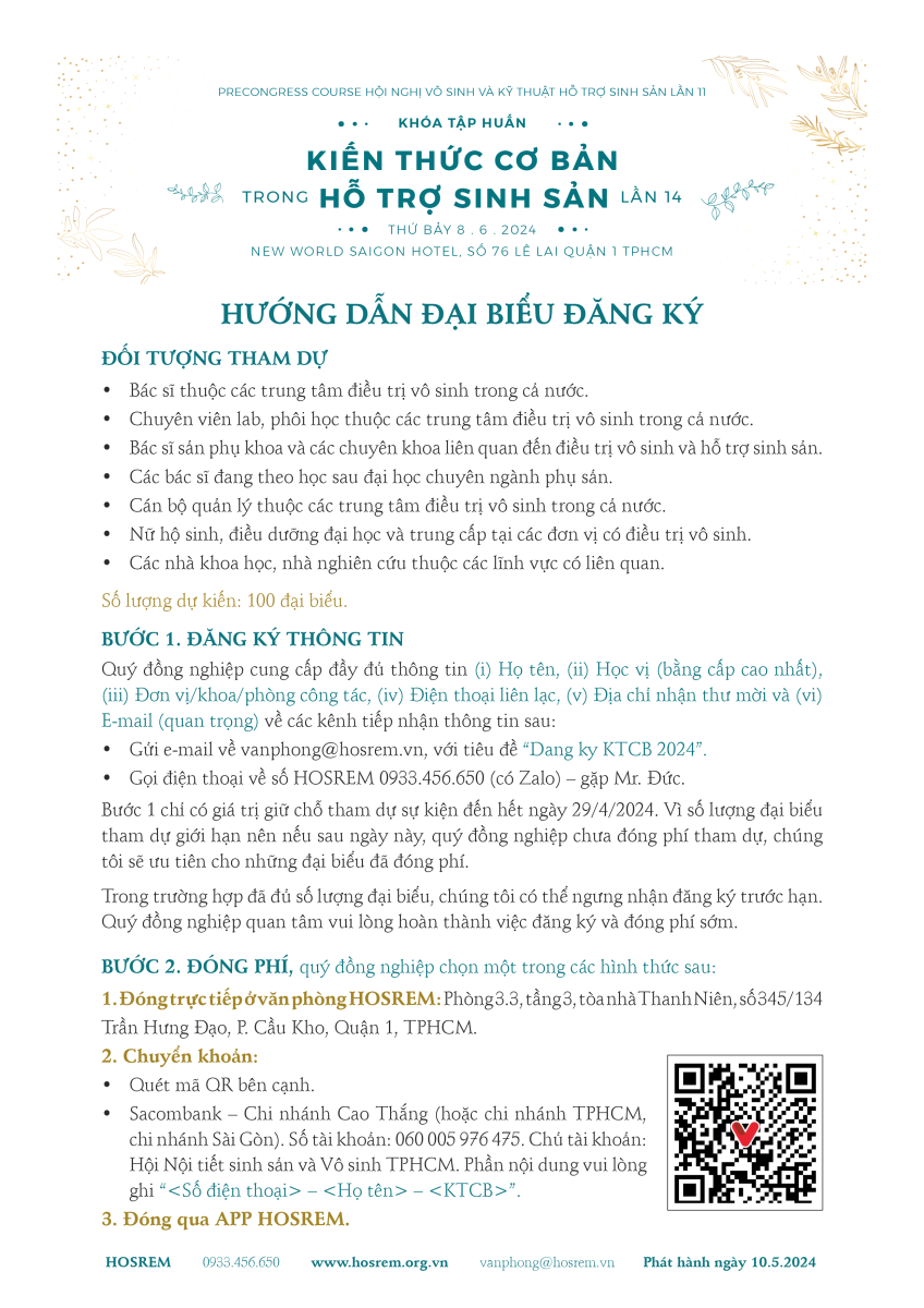 Vì sức chứa hội trường có giới hạn, ban tổ chức tạm ngưng nhận đại biểu từ ngày 24.5.2024. Chân thành xin lỗi nếu làm phiền quý đồng nghiệp.