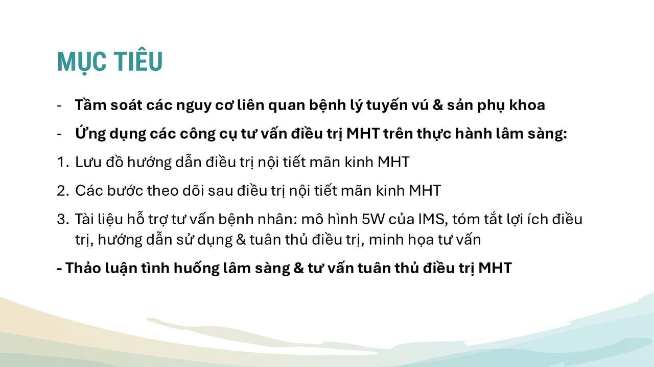 Hướng dẫn thực hành: tư vấn lợi ích - nguy cơ khi điều trị MHT và sử dụng lâu dài