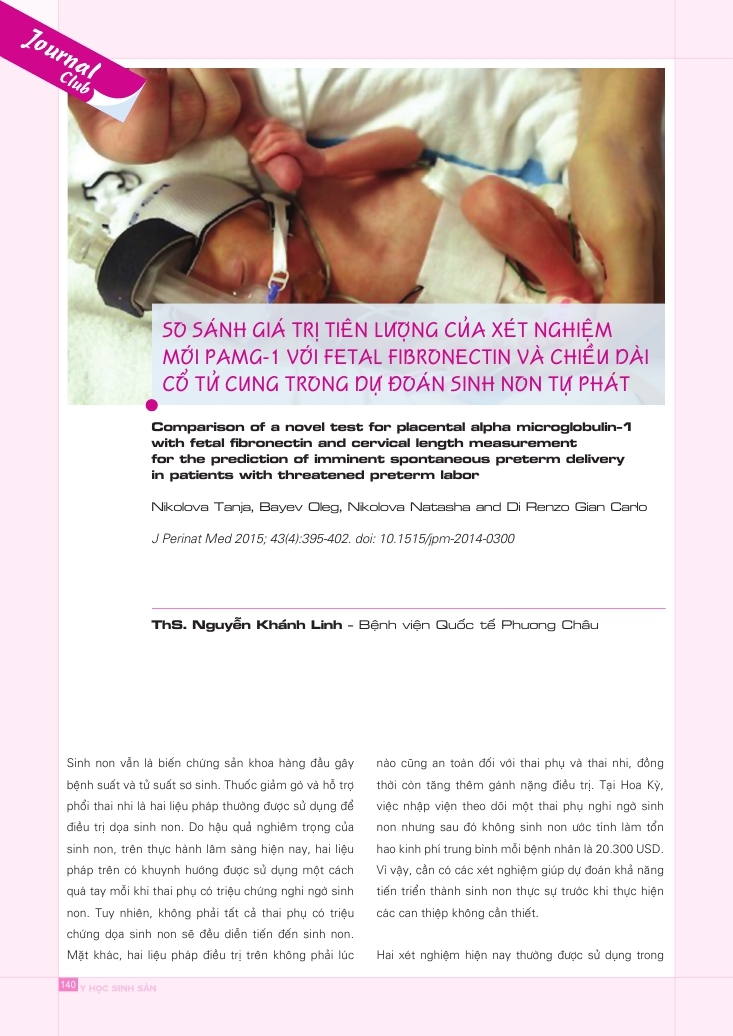 So sánh giá trị tiên lượng của xét nghiệm mới PAMG-1 với FETAL FIBRONECTIN và chiều dài cổ tử cung trong dự đoán sinh non tự phát 20/10/2015 40 Lượt xem Từ khóa: So sánh giá trị tiên lượng của xét nghiệm mới PAMG-1 với FETAL FIBRONECTIN và chiều dài cổ tử cung trong dự đoán sinh non tự phát Chia sẻ bài viết: Zalo