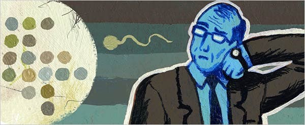 Tuổi của người bố tăng lên có tương quan đáng kể với việc giảm các thông số của tinh dịch đồ bao gồm thể tích, số lượng tinh trùng, độ di động, hình thái và cả khả năng sống. Mặc dù cơ chế vẫn chưa rõ ràng nhưng đã có một số bằng chứng được đưa ra bao gồm giảm chức năng của các tuyến sinh dục phụ, thay đổi sinh lý tế bào như giảm khả năng sửa chữa sai hỏng, giảm số lượng tế bào mầm và hàm lượng androgen, thay đổi cấu trúc một số tuyến ống sinh dục phụ, suy giảm tế bào sinh tinh dẫn đến bất thường hình thái… được xem là những nguyên nhân gây suy giảm các thông số tinh dịch đồ ở nam giới lớn tuổi [2][3].